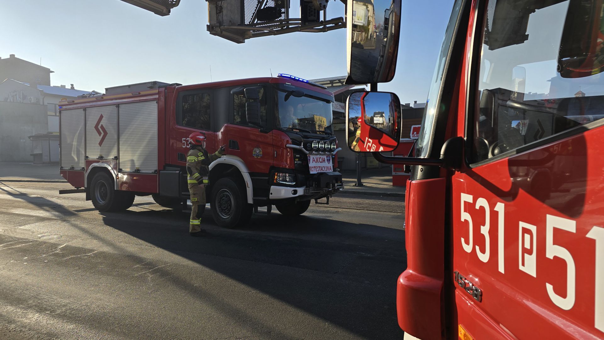 Na miejsce zdarzenia skierowano dwa wozy gaśnicze Państwowej Straży Pożarnej, jeden wóz z podnośnikiem oraz zastęp Ochotniczej Straży Pożarnej z Ostrowa Wielkopolskiego. Takie działania są standardowe w przypadku podejrzenia pożaru, szczególnie w budynkach wielorodzinnych, gdzie potencjalne zagrożenie dla mieszkańców jest znaczne.