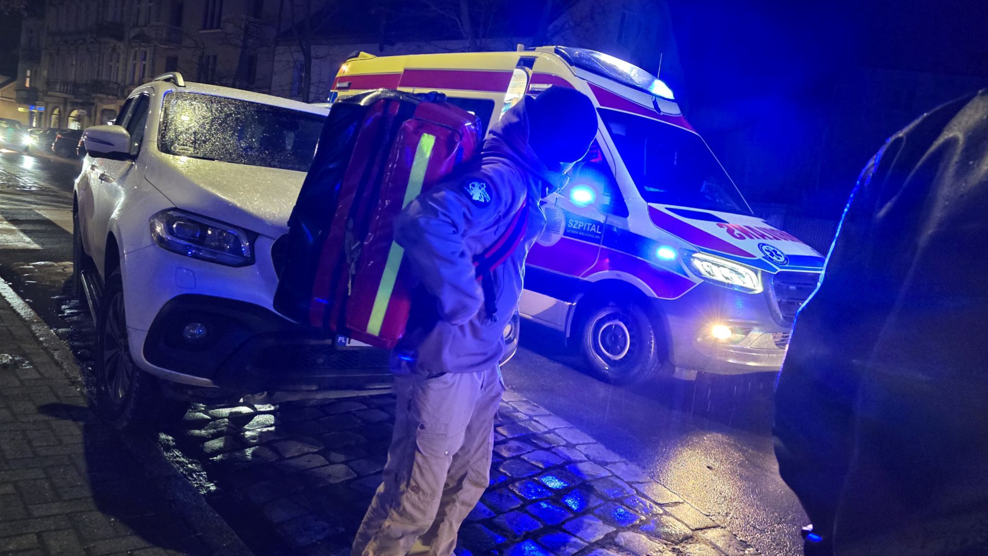 Na miejsce wypadku natychmiast przybyli ratownicy z grupy poszukiwawczo-ratowniczej, którzy zabezpieczyli poszkodowanego. Mężczyzna skarżył się na ból biodra, co wskazuje na możliwość poważniejszych obrażeń. Wkrótce na miejscu pojawił się także patrol drogówki oraz karetka pogotowia, która zajęła się poszkodowanym.