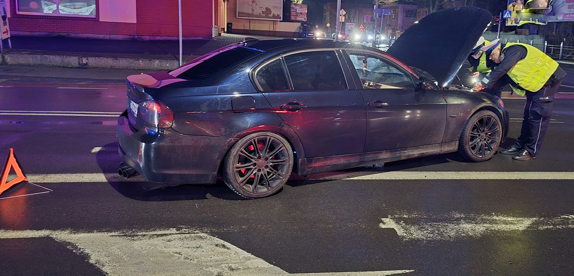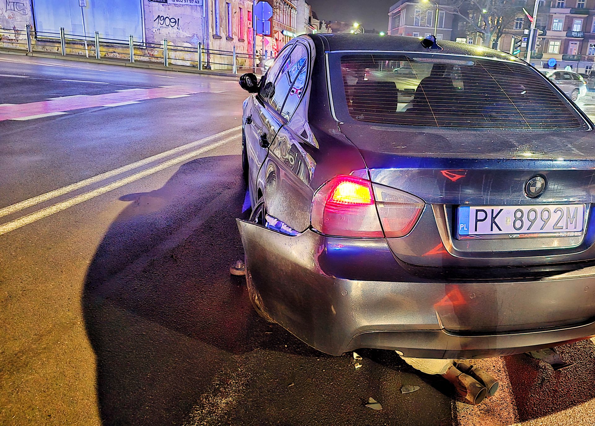 Sprawca kolizji, zamiast zatrzymać się i wyjaśnić sprawę, podjął próbę ucieczki. Jednak uszkodzenia, jakie powstały w wyniku zderzenia, okazały się na tyle poważne, że daleka ucieczka nie była możliwa. W wyniku kolizji uszkodzeniu uległo nie tylko koło BMW, ale również pojazd sprawcy. Kierowca Volkswagena dotarł jedynie w okolice stacji paliw przy markecie E. Leclerc, gdzie porzucił pojazd.