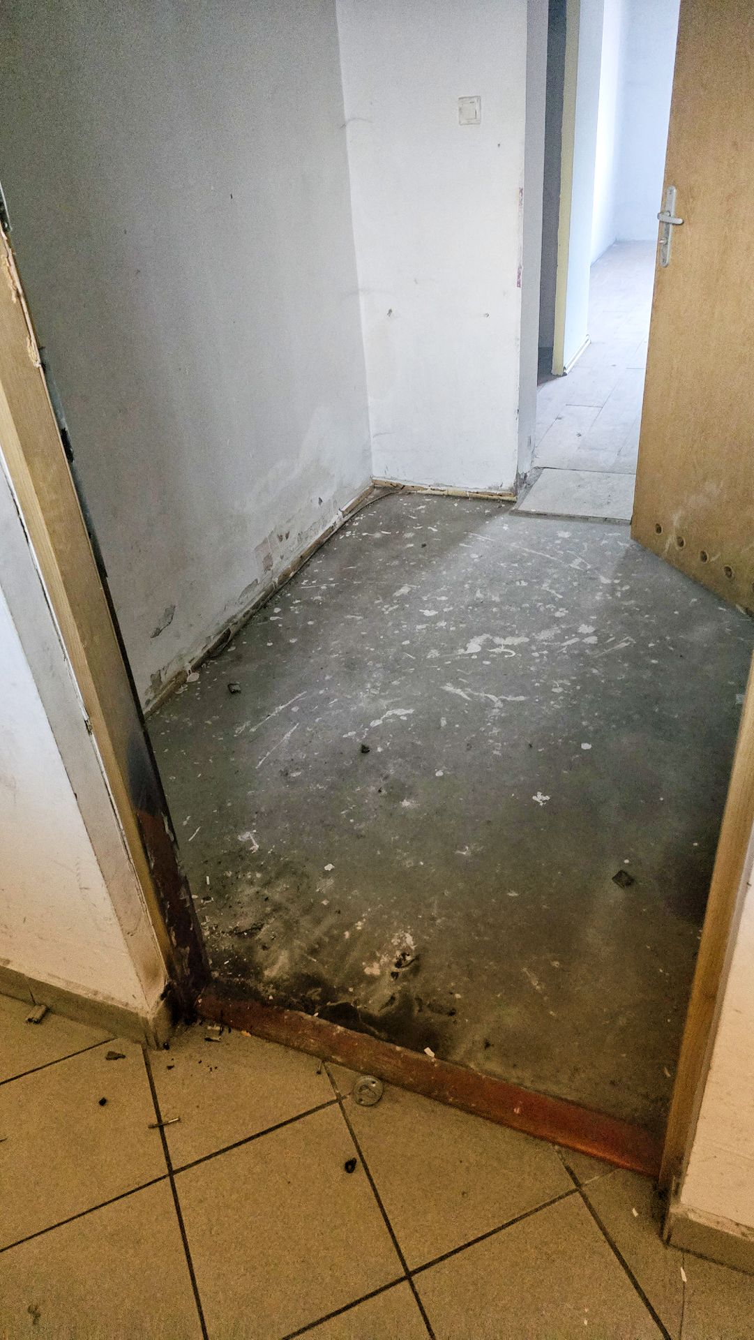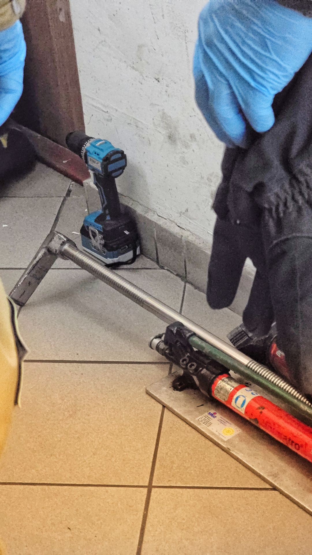 Z uwagi na zagrożenie, policja podjęła decyzję o siłowym otwarciu drzwi. Jak się okazało, drzwi zamontowane w budynku socjalnym były solidne i stawiały duży opór, co świadczy o dobrej jakości wyposażenia zapewnionego przez spółkę MZGM. Po otwarciu lokalu strażacy stwierdzili, że dym przedostał się do wnętrza mieszkania w trakcie pożaru drzwi.