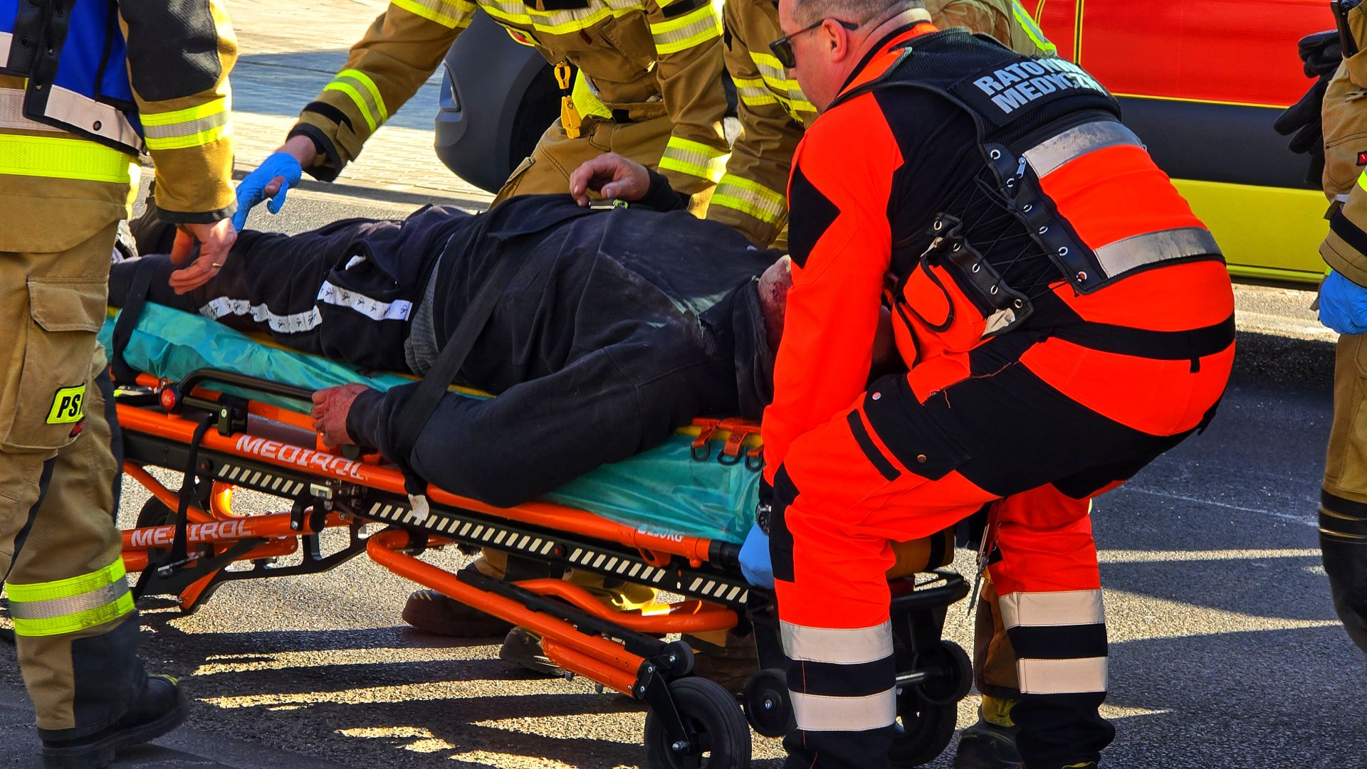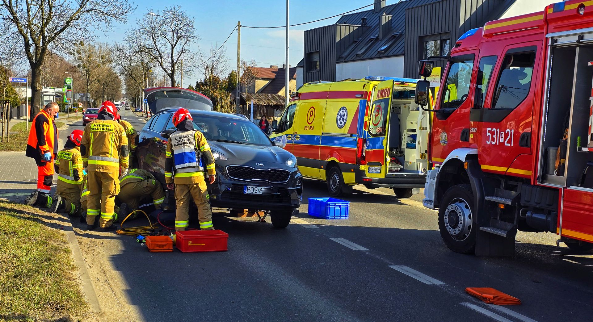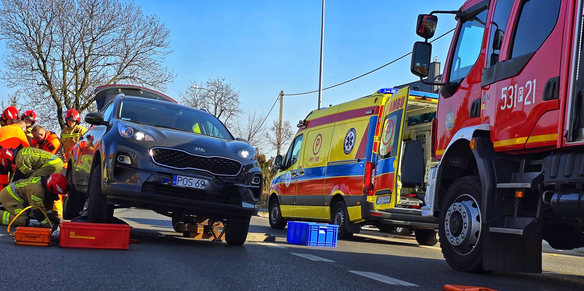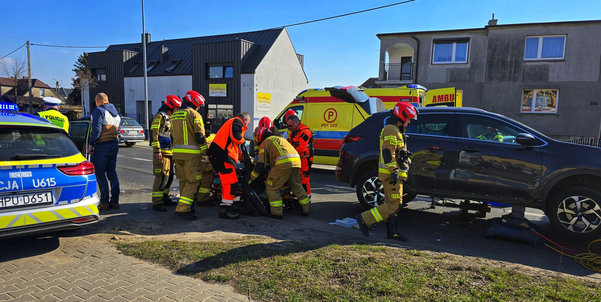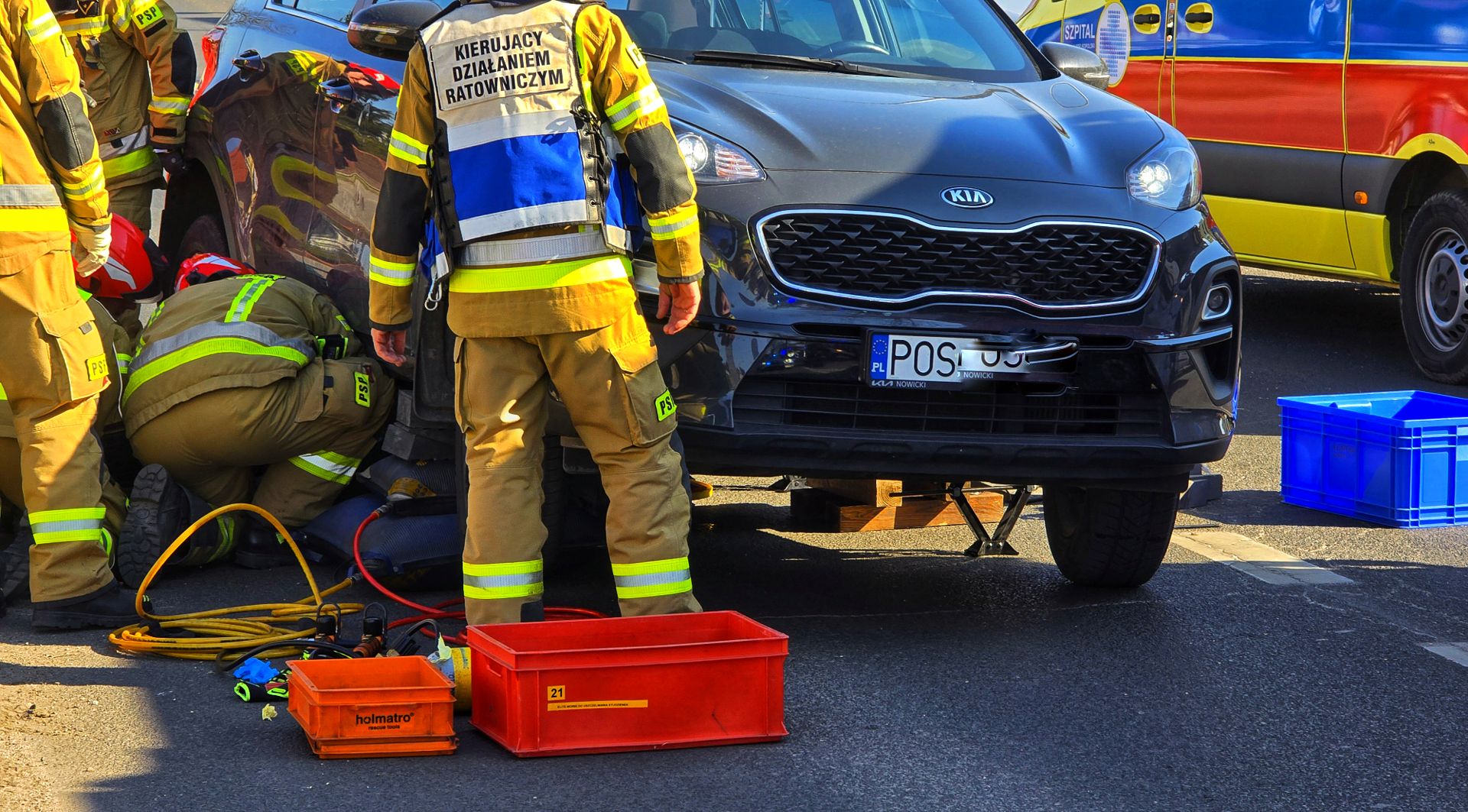 Na miejsce natychmiast wezwano służby ratunkowe. Strażacy, używając poduszek pneumatycznych, podnieśli samochód i wydobyli poszkodowanego. Następnie przekazano go zespołowi ratownictwa medycznego.