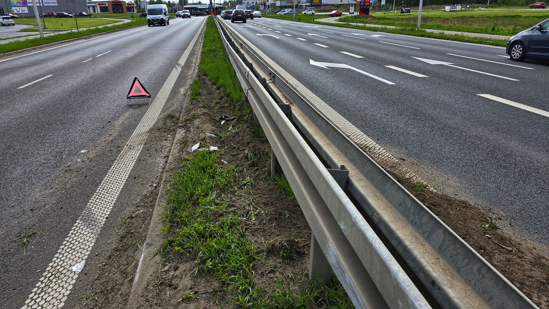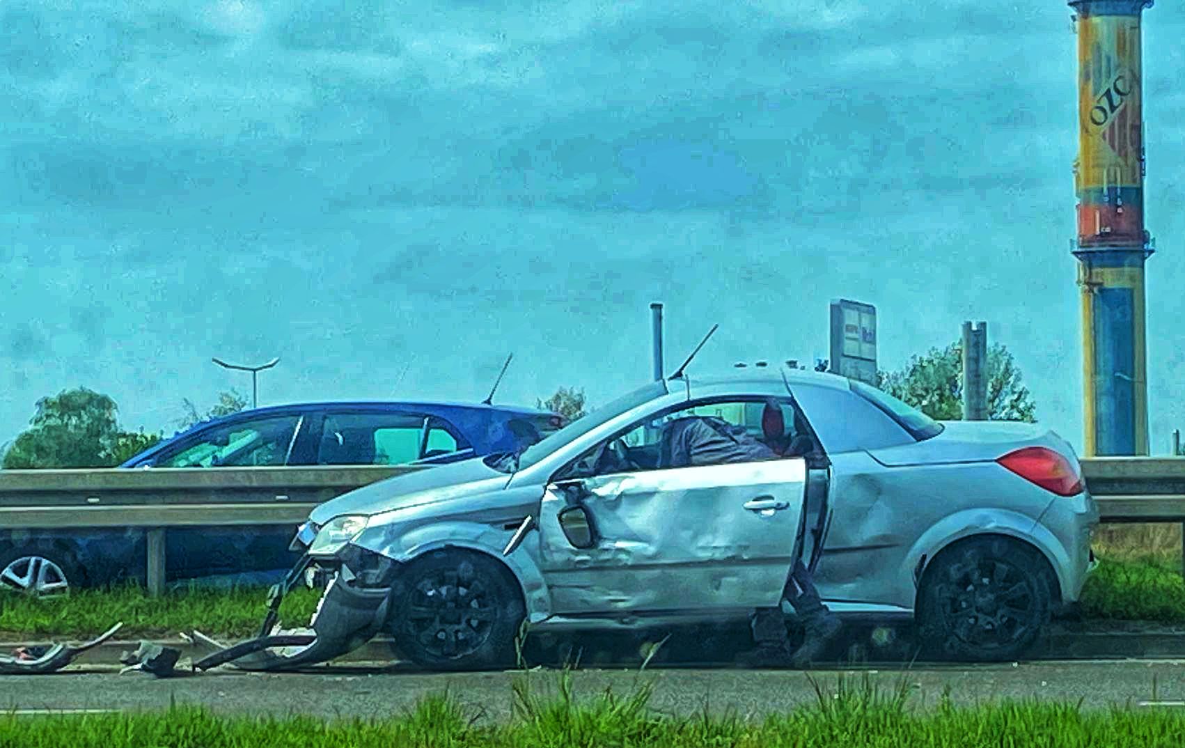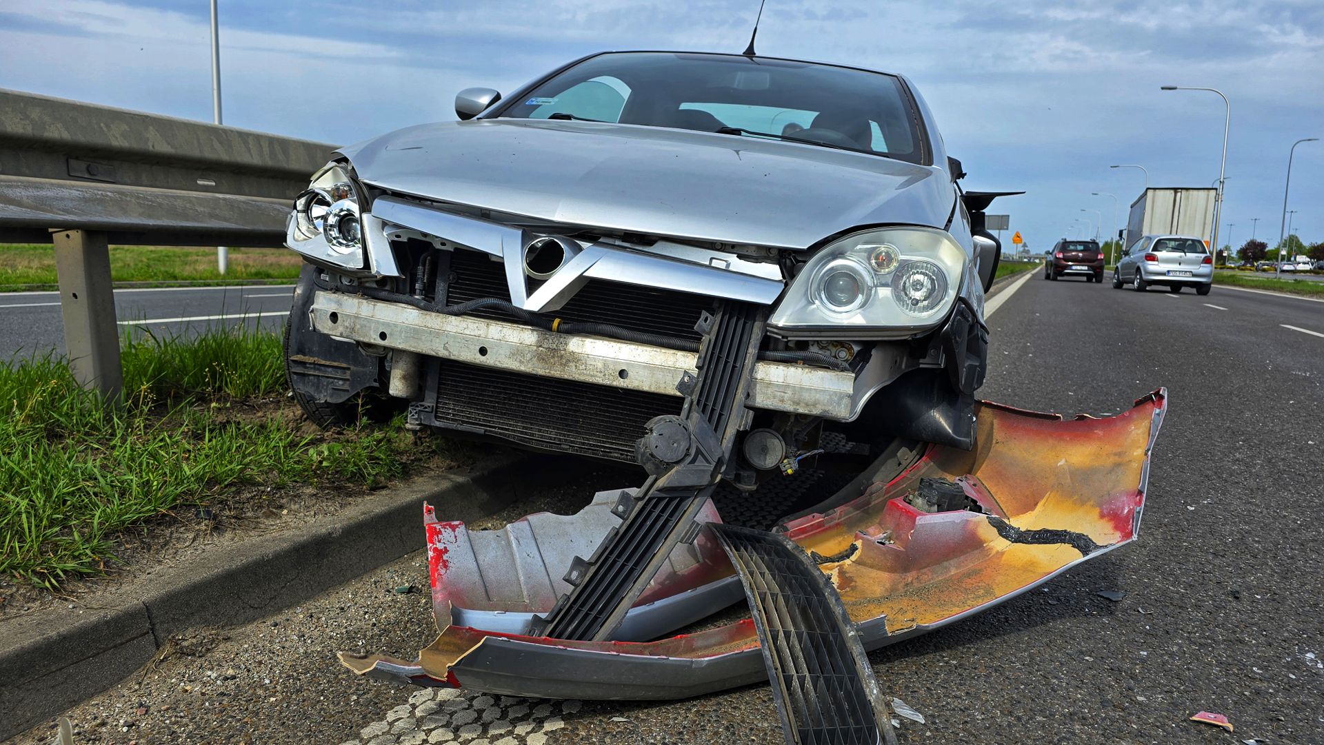 Osobówka uderzona w tył została podcięta i przesunęła się z prawej na lewą stronę ciężarówki. Kierowca DAF-a początkowo też odbił w lewo, licząc na to, że uniknie kolizji. W efekcie docisnął Opla do bariery energochłonnej i spowodował urwanie koła oraz pokiereszowanie karoserii.