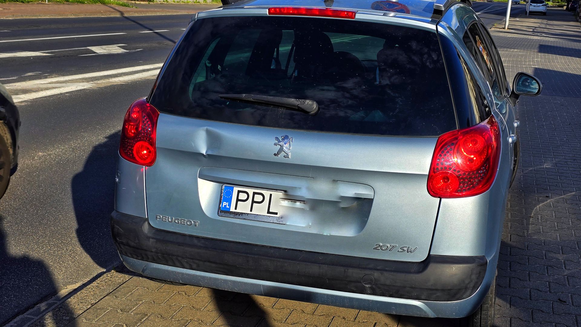 Do zdarzenia doszło przed godziną 18:00, gdy ruch na drodze został spowolniony przez samochody skręcające do pobliskiego lokalu gastronomicznego. Wśród nich był również Peugeot, którym podróżowała para dorosłych z dzieckiem. Nagle, w tył pojazdu uderzył jadący za nim nastoletni rowerzysta. Nie zdołał wyhamować i z impetem uderzył w karoserię samochodu, powodując skrzywienie koła w rowerze oraz uszkodzenie elektronicznego licznika i wgniecenie klapy bagażnika auta.
