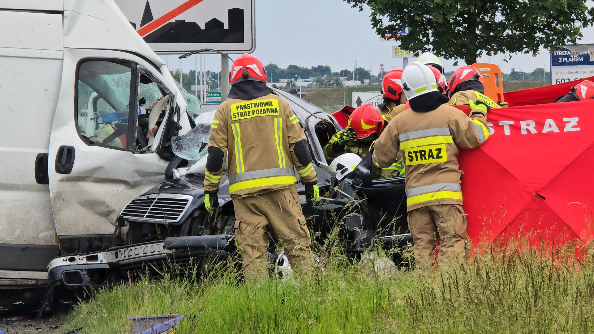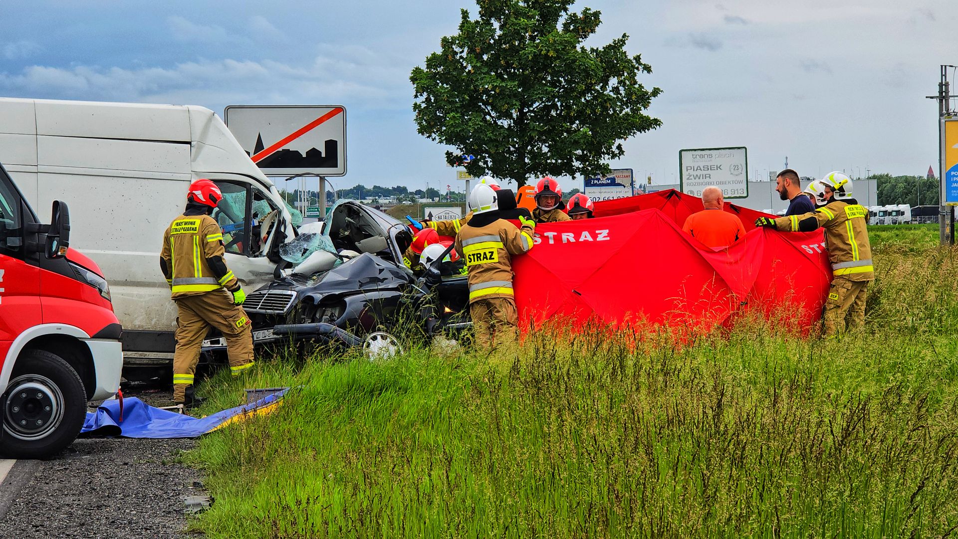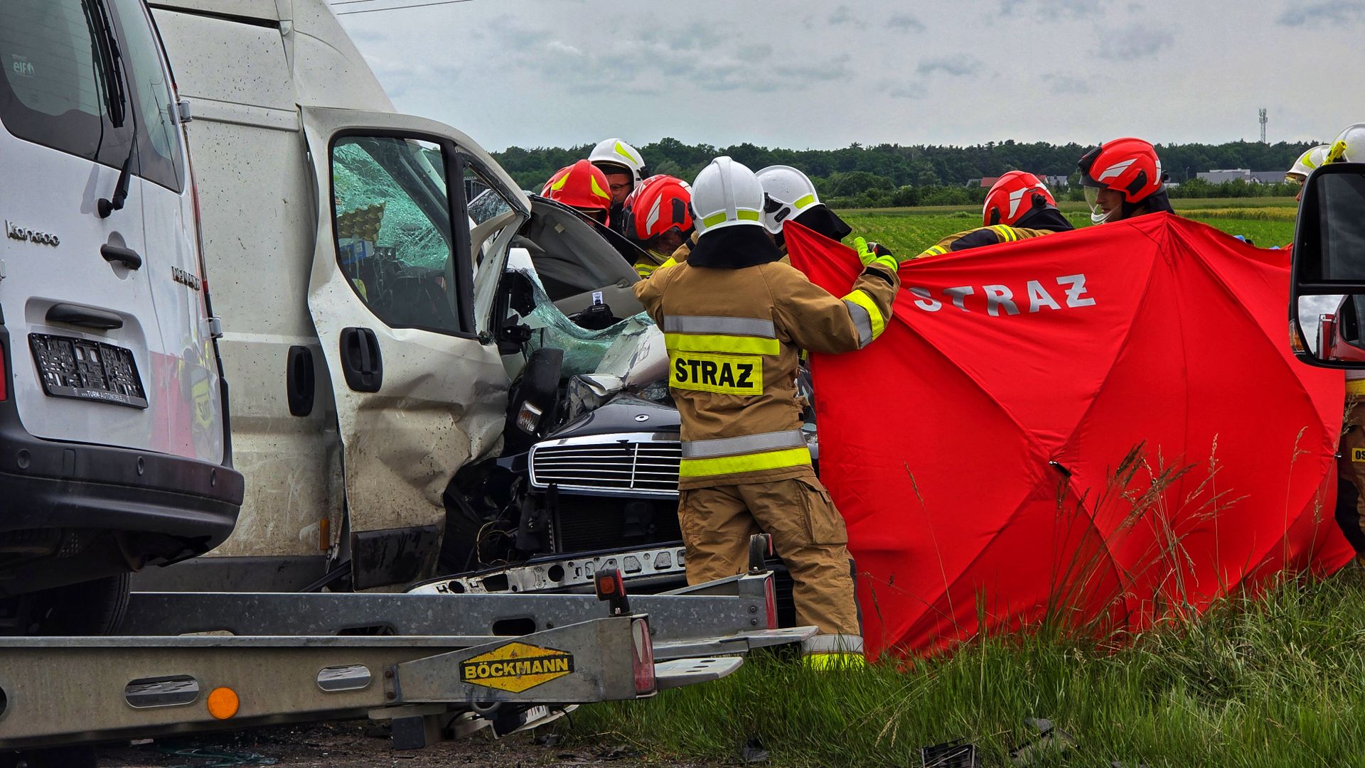 Dwóch mężczyzn zginęło na miejscu. Trzecia osoba, kierowca z busa, trafiła do karetki.