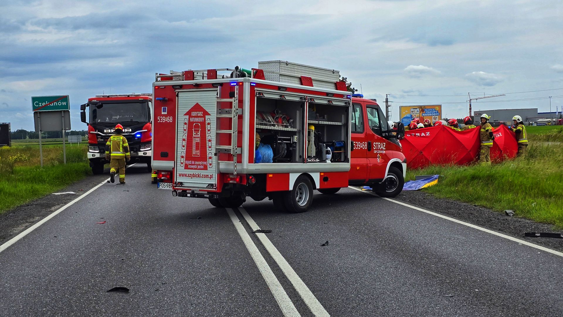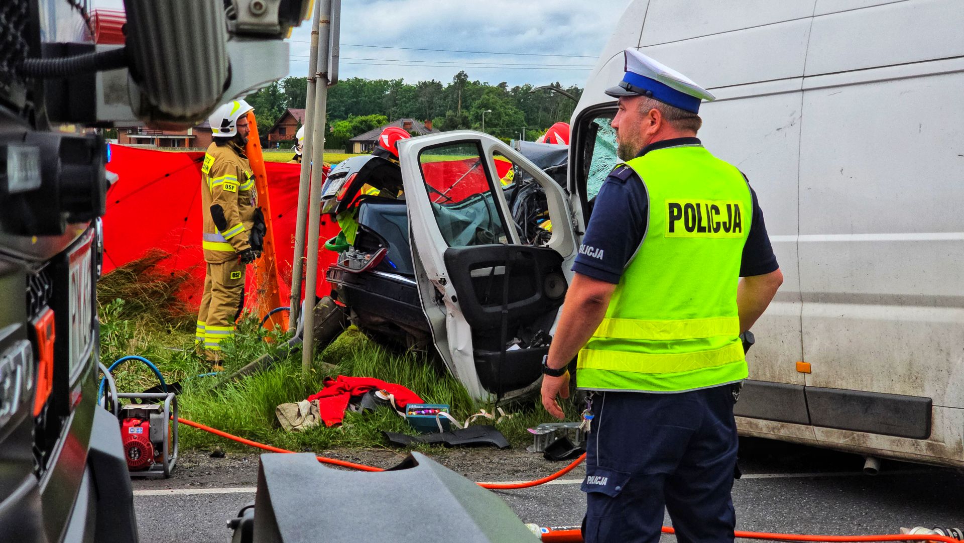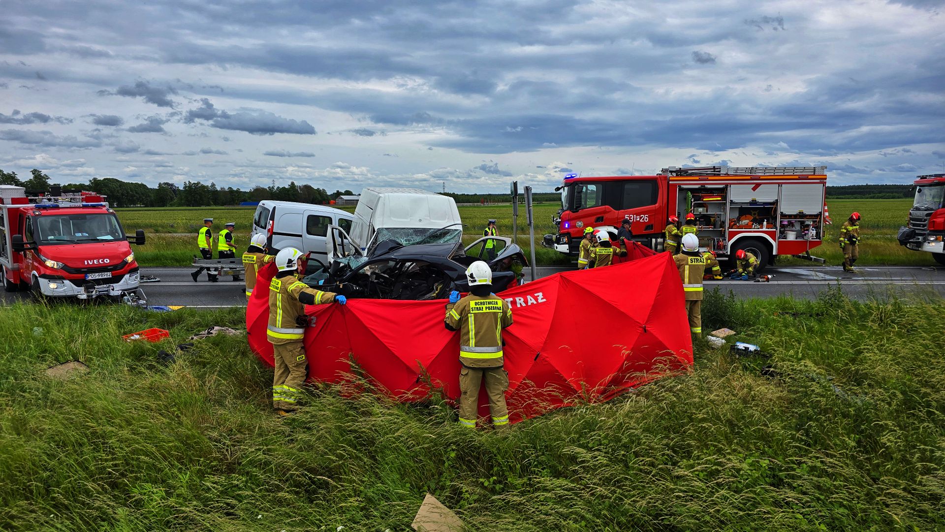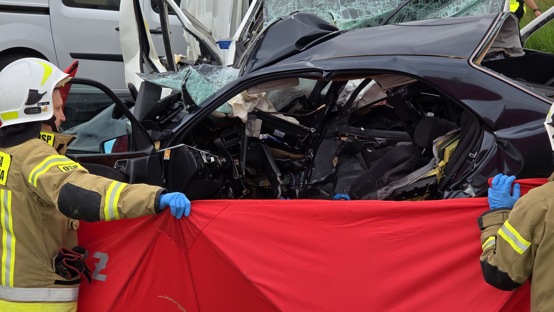 Dwóch mężczyzn zginęło na miejscu. Trzecia osoba, kierowca z busa, trafiła do karetki.