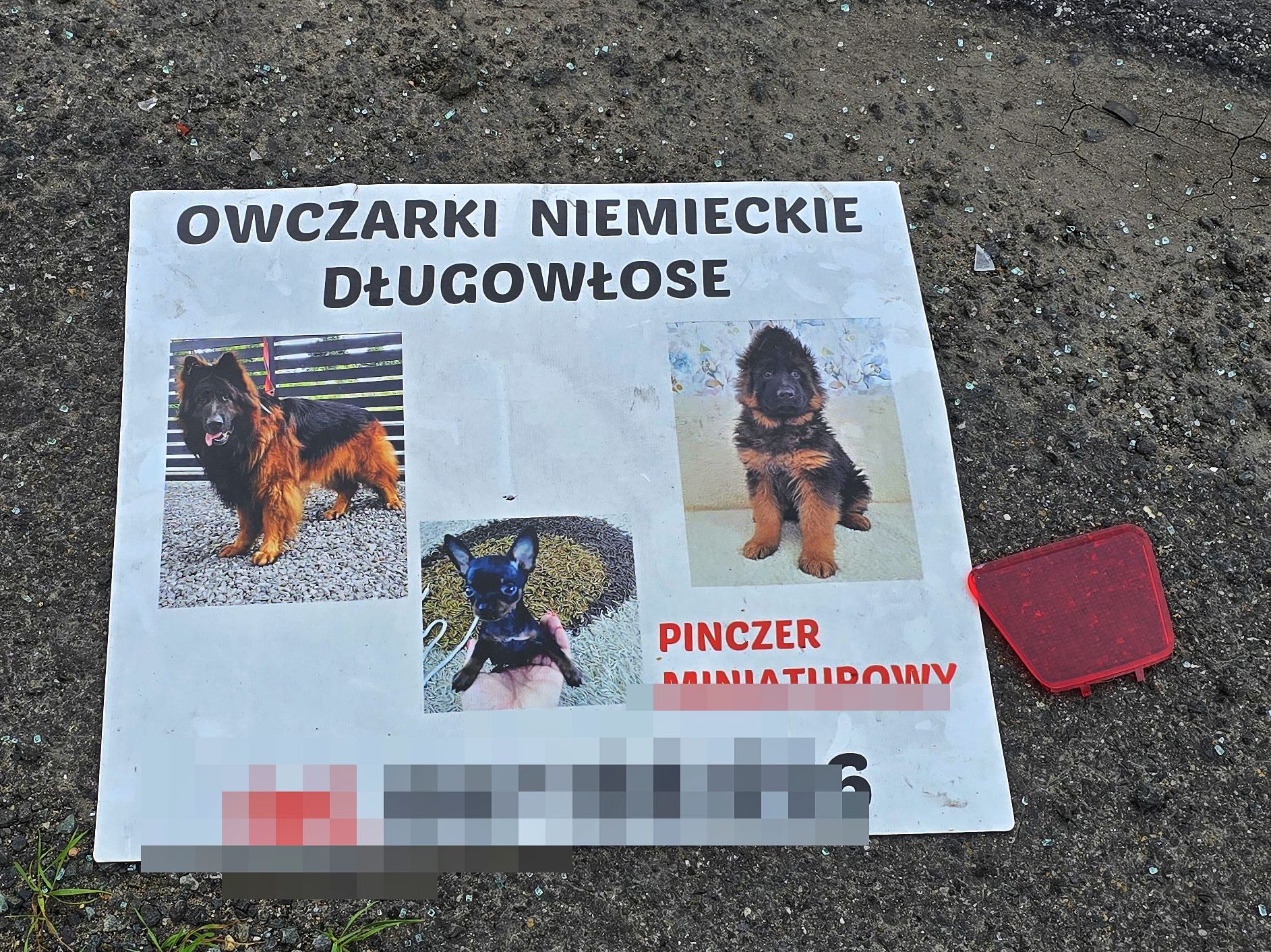W zdarzeniu zginęły też dwa psy. Jedno z aut miało reklamę z hodowlą psów.