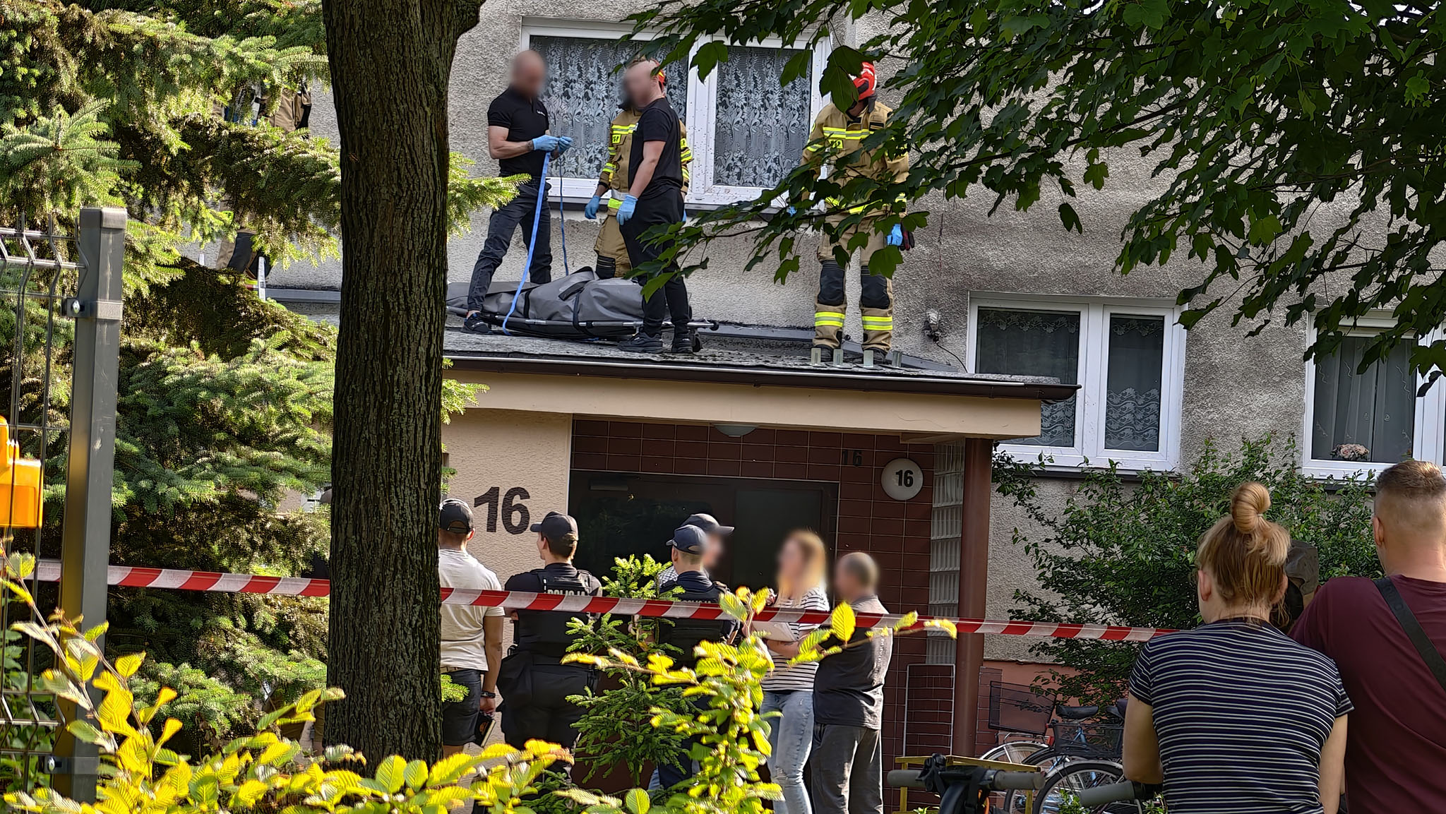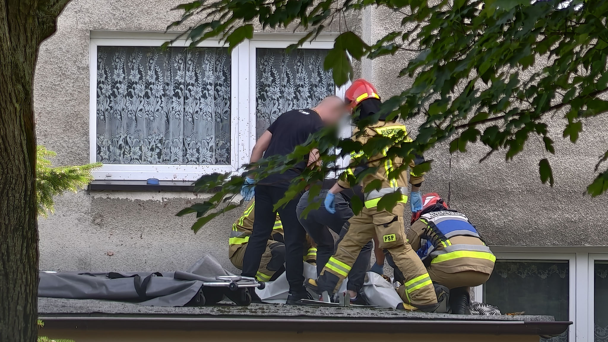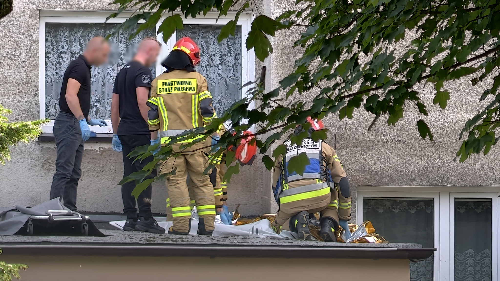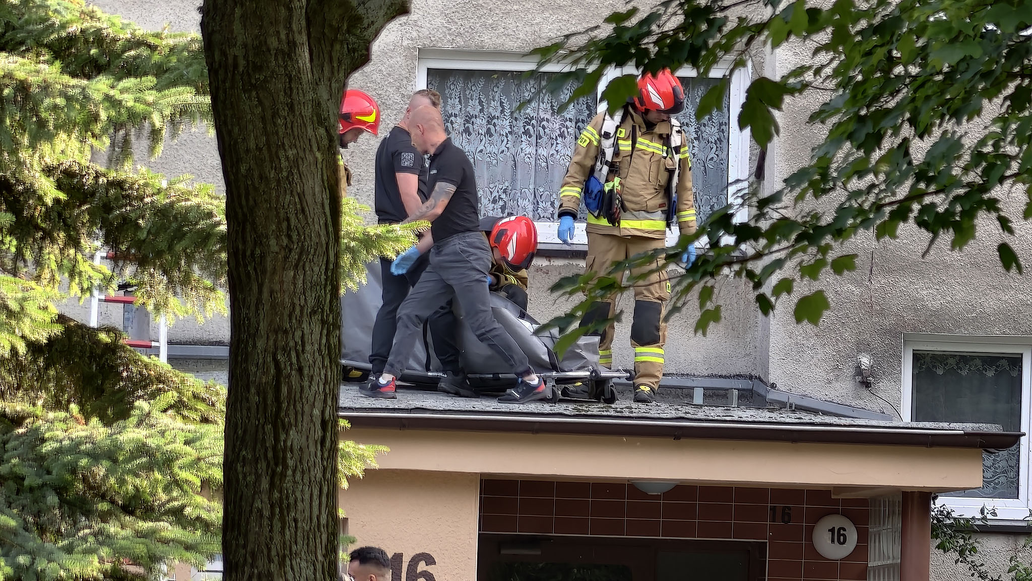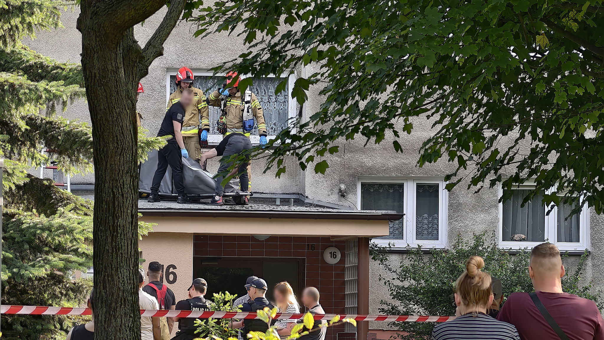Kobieta spadła na daszek nad wejściem do budynku. Niestety, mimo błyskawicznej interwencji służb ratunkowych, jej życia nie udało się uratować. Jak informują medycy, doznała rozległych, wielonarządowych obrażeń, które okazały się śmiertelne. Lekarze stwierdzili zgon na miejscu.