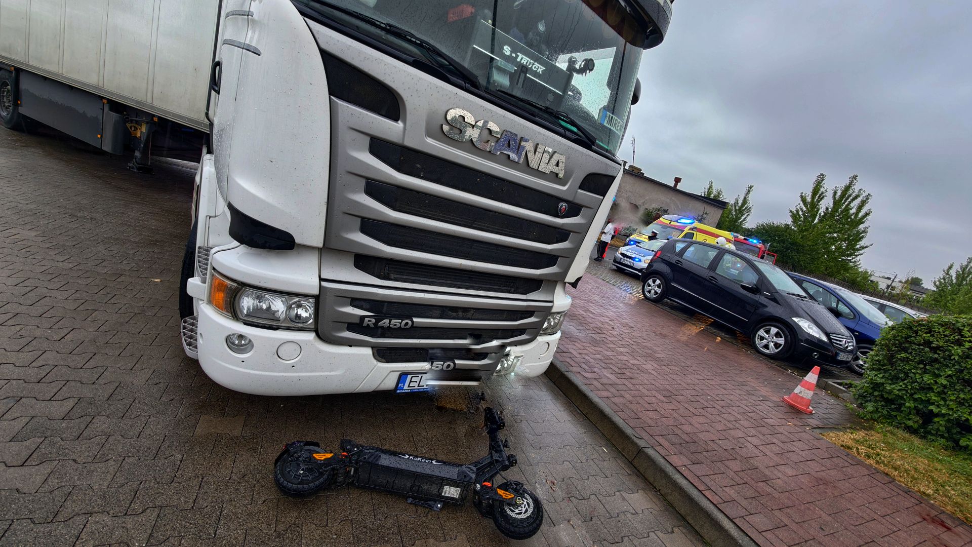 Poważny wypadek z udziałem nastolatka na hulajnodze elektrycznej i ciężarówki w Ostrowie Wielkopolskim