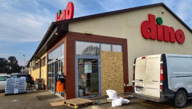 Kwadrans przed godziną 8 rano doszło do niebezpiecznego zdarzenia na terenie sklepu Dino przy ulicy Poznańskiej w Ostrowie Wielkopolskim. Samochód wjechał w szybę