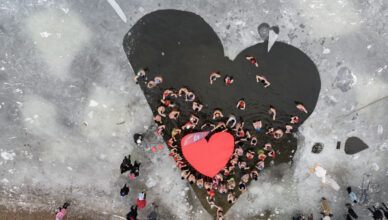 Ostrowskie morsy w dniu finału WOŚP postanowiły wyciąć wielki przerębel w kształcie serca. Dopełnieniem było duże czerwone serce wewnątrz. Kąpiel odbyła się przy