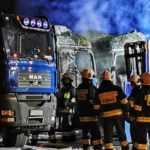 Funkcjonariusze z ostrowskiej drogówki jadąc przez Czekanów zauważyli pożar samochodów ciężarowych na terenie warsztatu samochodowego. Policjanci wezwali strażaków i poinformowali mieszkańców pobliskiego domu o powstałym zagrożeniu.