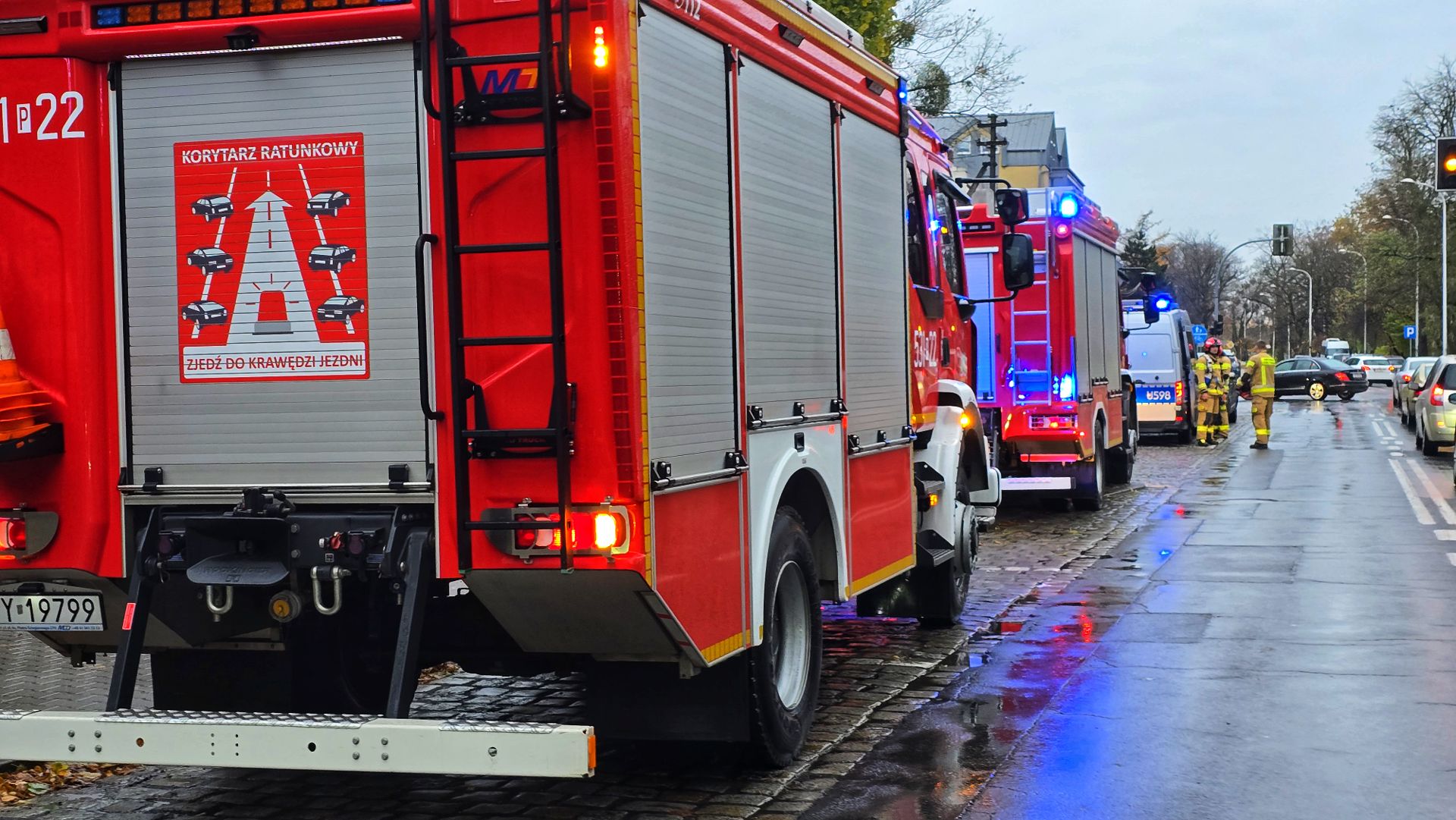 Na miejscu pojawili się także strażacy, którzy usunęli pozostałości z rozbitych aut.