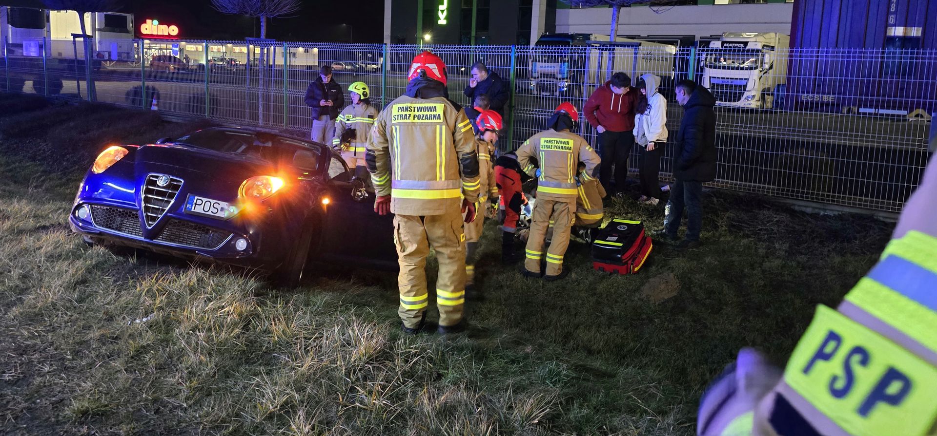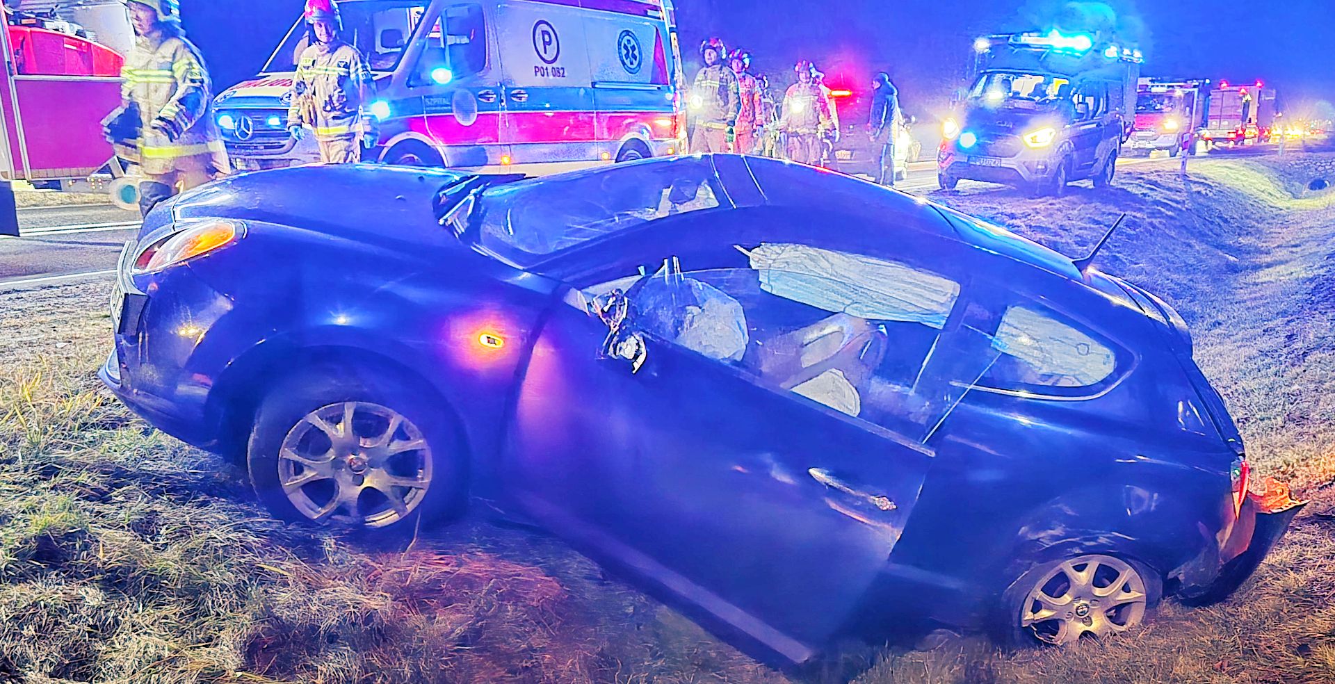 W zdarzeniu brały udział Volkswagen, którym podróżowali młodzi ludzie – kierowca z woj. lubelskiego, a pasażerka z Ostrowa Wielkopolskiego. Natomiast Alfą Romeo jechała kobieta w wieku około 30 lat i to ona trafiła do karetki, najprawdopodobniej w skutek bliskiego uderzenia poduszką powietrzną.