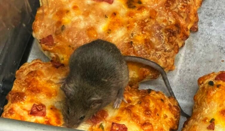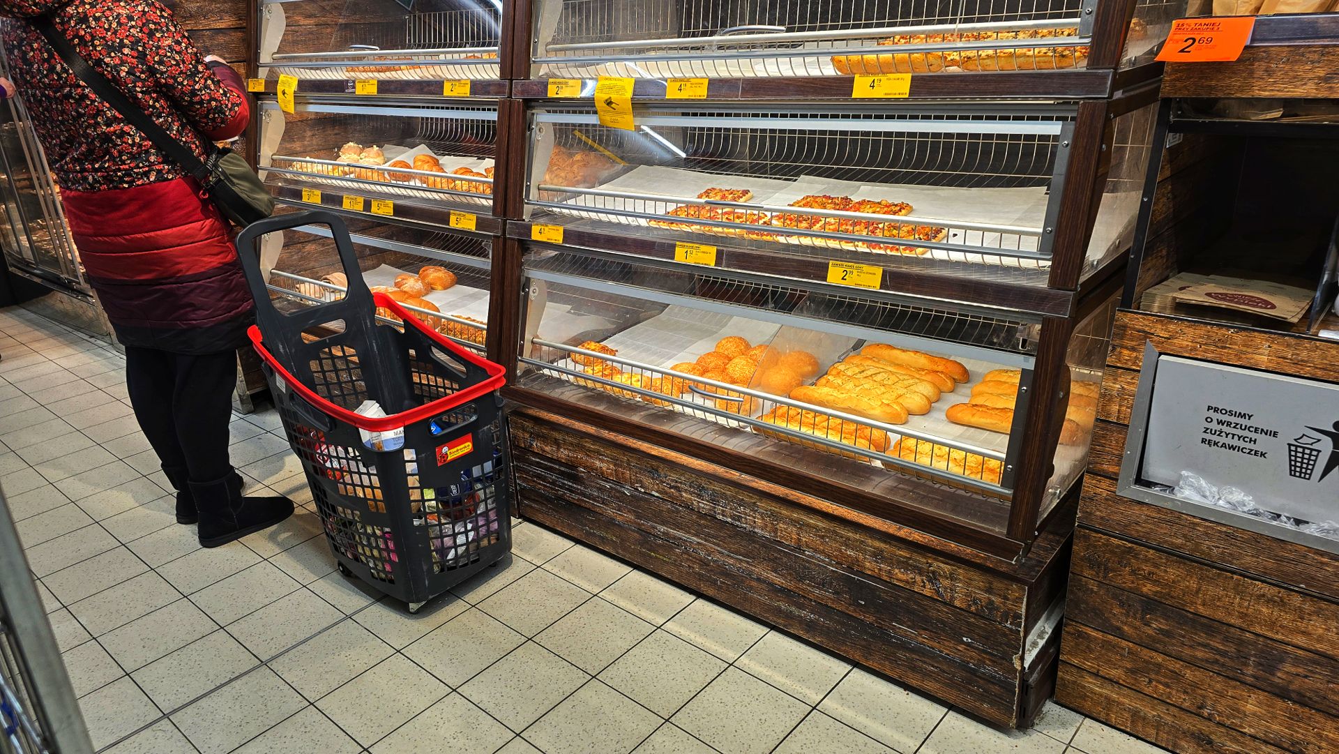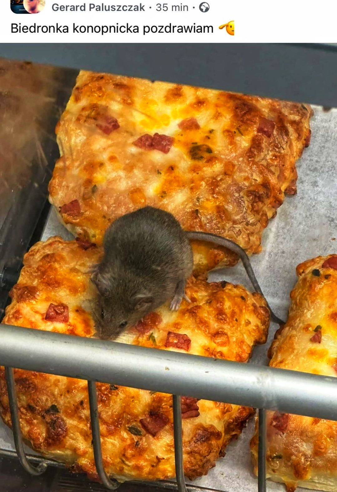Niepokojące odkrycie w jednym z marketów Biedronka w Ostrowie Wielkopolskim. Jeden z mieszkańców zrobił zdjęcie myszy spacerującej po pieczywie w sklepie przy ulicy Konopnickiej. Prawdziwość zdjęcia potwierdzają charakterystyczne ślady zabrudzenia na barierce oraz układ tostów z serem i szynką.