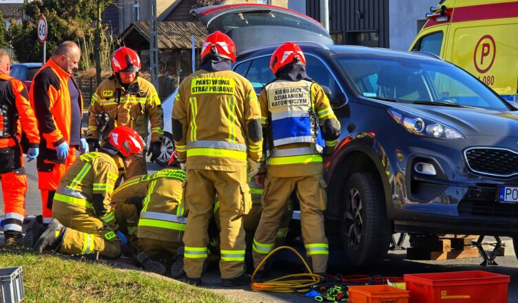 Na miejsce natychmiast wezwano służby ratunkowe. Strażacy, używając poduszek pneumatycznych, podnieśli samochód i wydobyli poszkodowanego. Następnie przekazano go zespołowi ratownictwa medycznego.