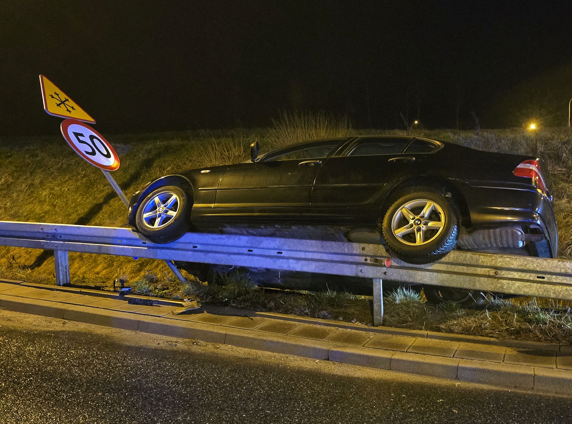 Na szczęście zarówno kierowca, jak i jego pasażerowie wyszli z całej sytuacji bez szwanku, co dowodzi, że bariera energochłonna faktycznie spełnia swoją funkcję – i to nie tylko w zakresie pochłaniania energii, ale również w roli nietypowego parkingu dla BMW.