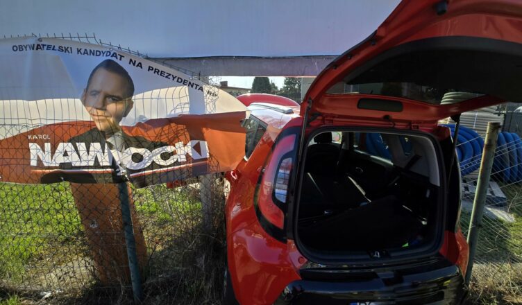 W wyniku zderzenia czerwona Kia straciła kontrolę nad kierunkiem jazdy, przebiła baner wyborczy Karola Nawrockiego i ogrodzenie z metalowej siatki, by ostatecznie zakończyć swój rajd na pobliskiej posesji. Nie wiemy, czy kandydat na prezydenta przewidział w swoim programie poprawę bezpieczeństwa na polskich drogach, ale wygląda na to, że jego baner padł ofiarą chaosu komunikacyjnego szybciej, niż sam by się tego spodziewał.