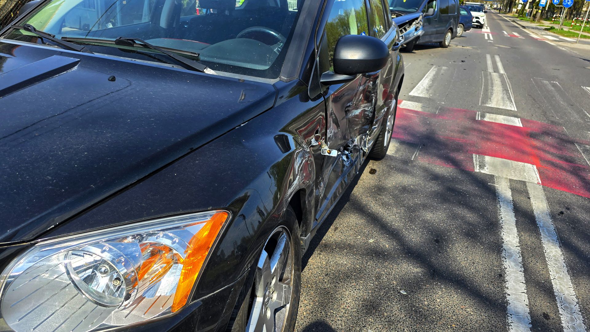 W efekcie uderzył w bok samochodu Dodge Caliber. Na szczęście zarówno kierowca z pasażerką w aucie poszkodowanego jak i sam sprawca nie odnieśli żadnych obrażeń ciała. Na miejsce wezwano policję oraz zastęp OSP do neutralizacji skutków kolizji.