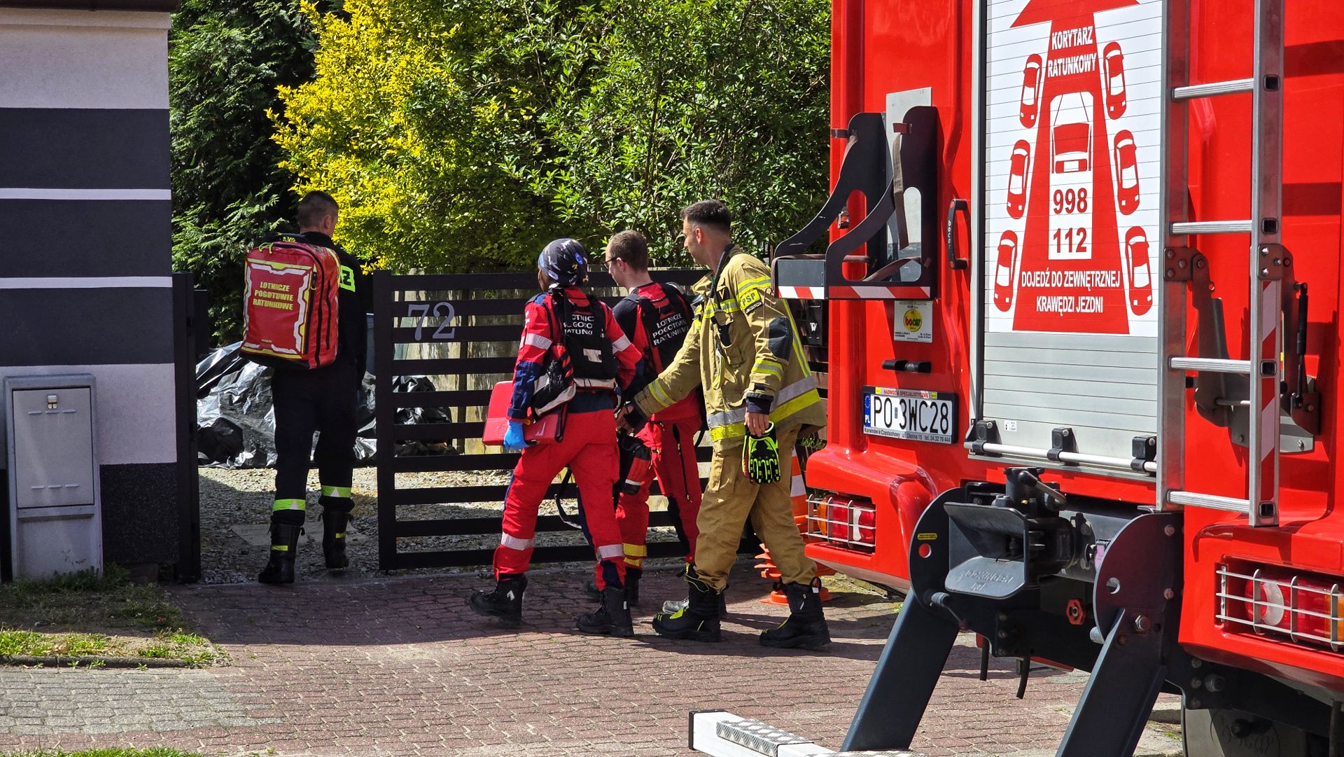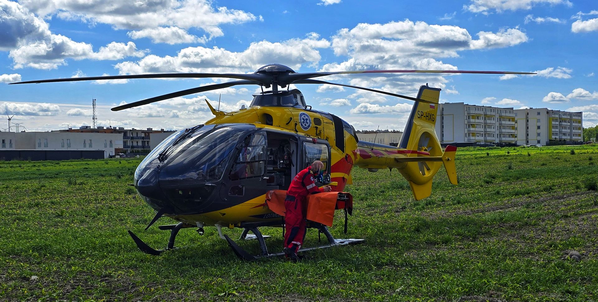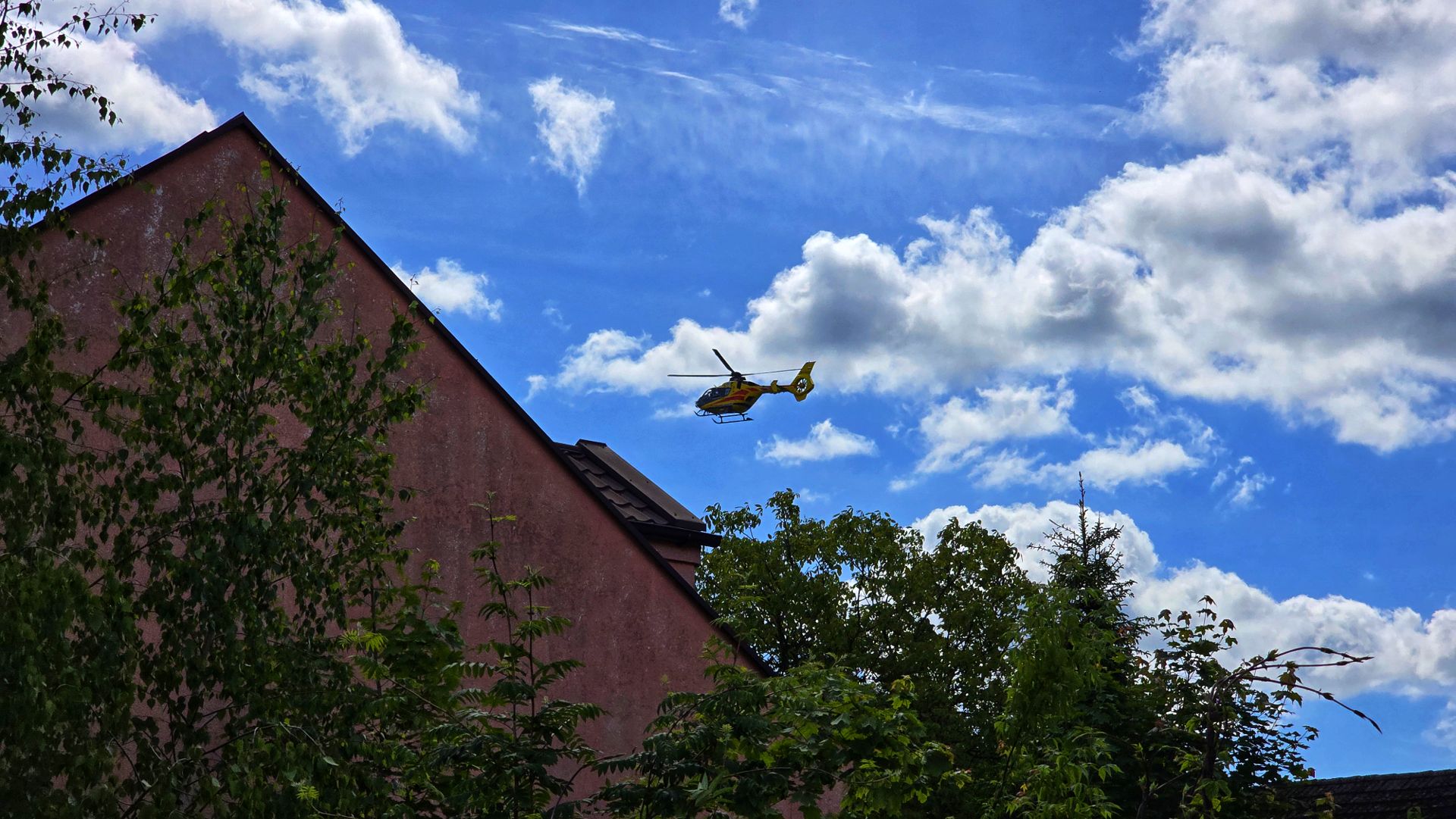 Okazuje się, że w jednym z domów przy ulicy Profesora Kaliny pomocy medycznej potrzebowała kobieta w wieku około 80 lat. Ponieważ żadna karetka nie była dostępna, zdecydowano o wysłaniu załogi LPR i straży pożarnej do zabezpieczenia lądowiska i pomocy w przetransportowaniu załogi LPR do domu.