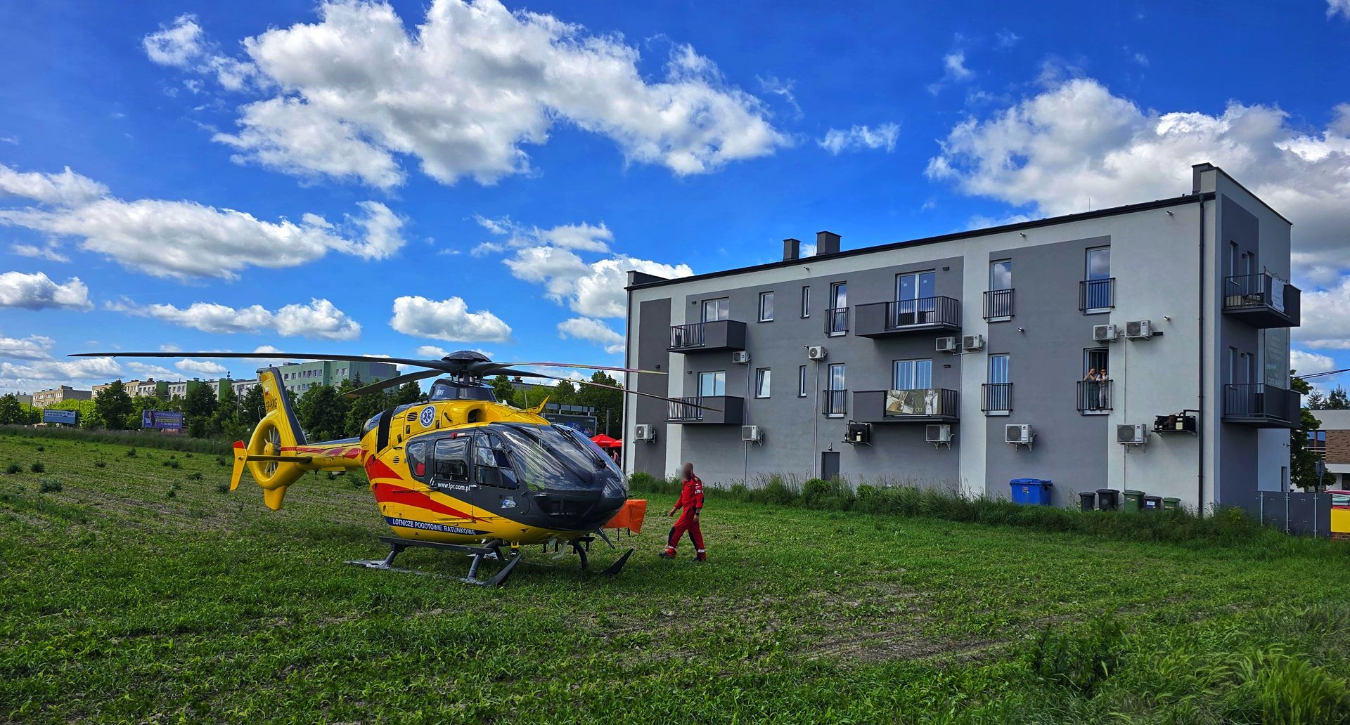 Około godziny 10.40 mieszkańcy dostrzegł śmigłowiec Lotniczego Pogotowia Ratunkowego nisko lecący nad blokami w rejonie ulic Śmigielskiego i Strzeleckiej w Ostrowie Wielkopolskim. W dodatku przyjechał także wóz straży pożarnej.
