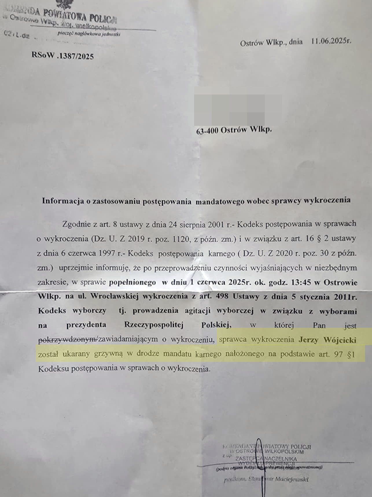 Jednak sprawa nie zakończyła się na jednym postępowaniu. Niespodziewanie to sam Jerzy Wójcicki trafił na komendę w roli podejrzanego – również o naruszenie ciszy wyborczej. Tym razem chodziło o wpis w mediach społecznościowych, w którym wspomniał nazwisko Rafała Trzaskowskiego w kontekście ilustracji do artykułu opublikowanego w jednym z portali. Choć wpis nie miał charakteru jawnej agitacji, został uznany za naruszenie ciszy wyborczej.