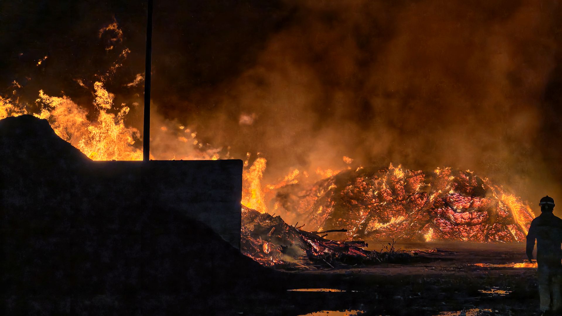 Na miejsce ruszyły pierwsze wozy strażackie gotowe stawić czoła ogniowi. Ale to, co zastali na miejscu, przeszło najczarniejsze scenariusze! 300 na 300 metrów trocin, zrzyn i innych łatwopalnych odpadów drewnianych – i już 1/3 tej gigantycznej hałdy stała w ogniu!