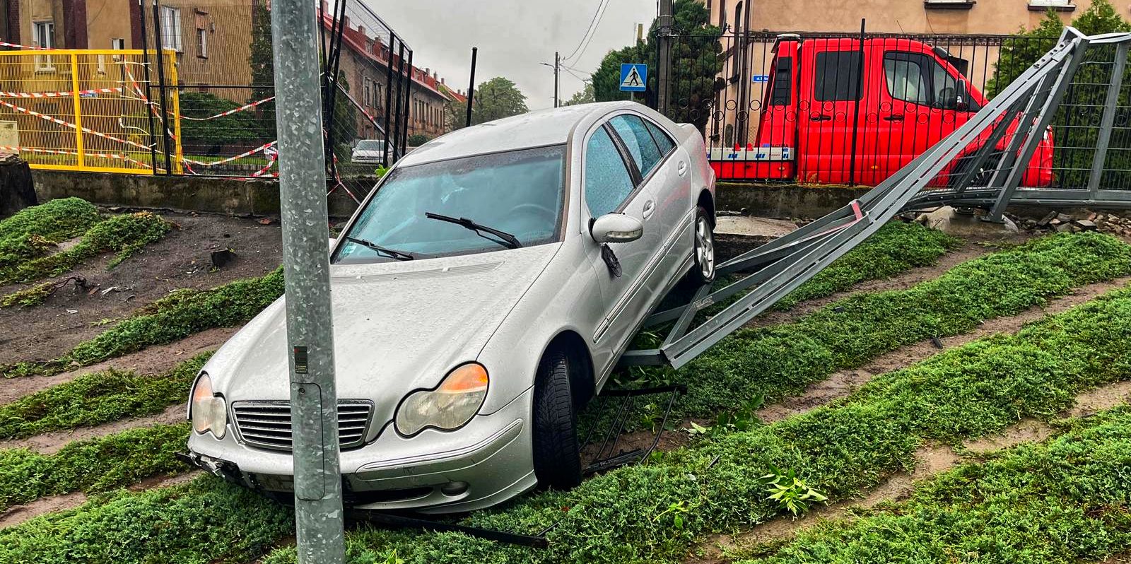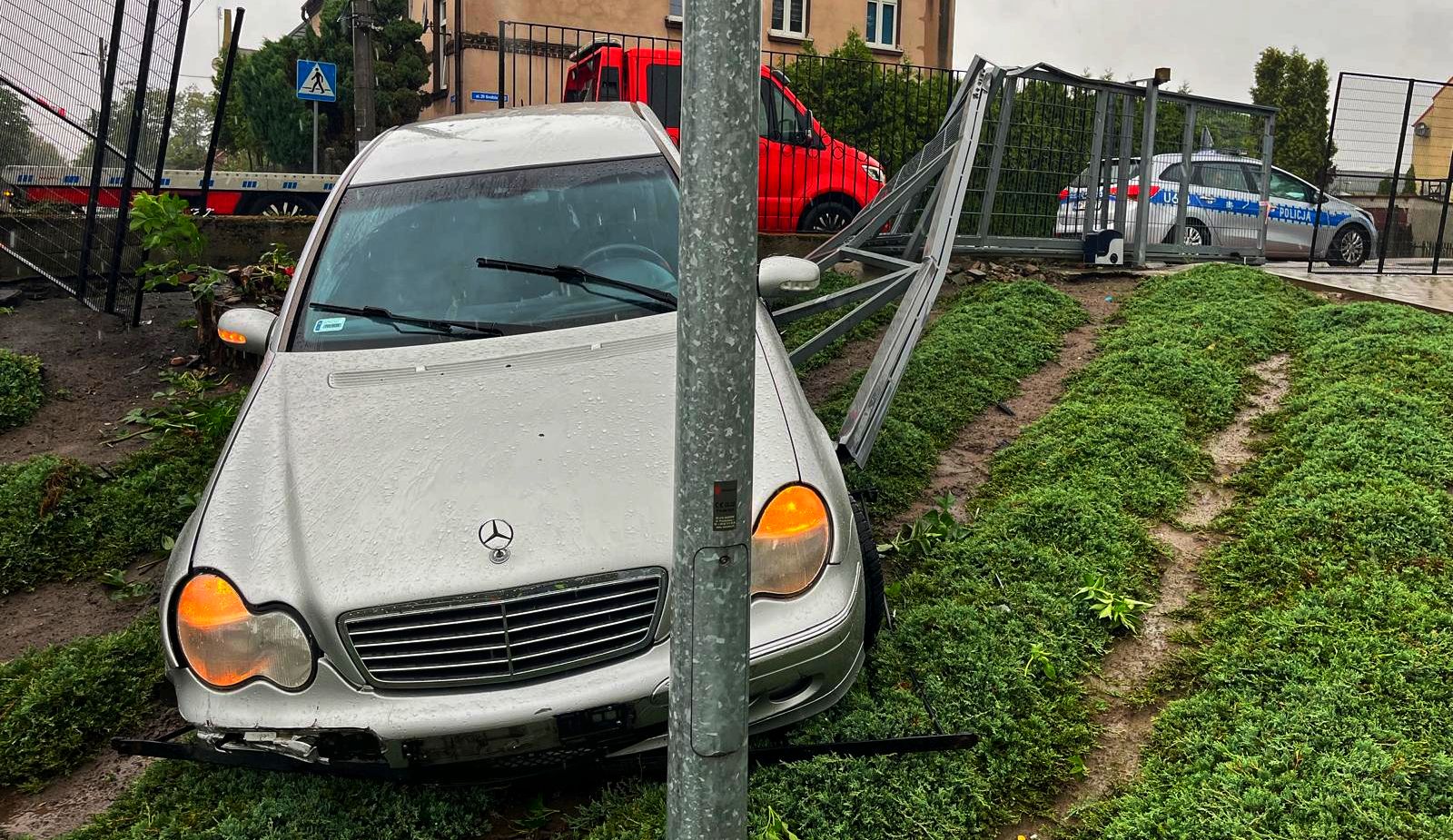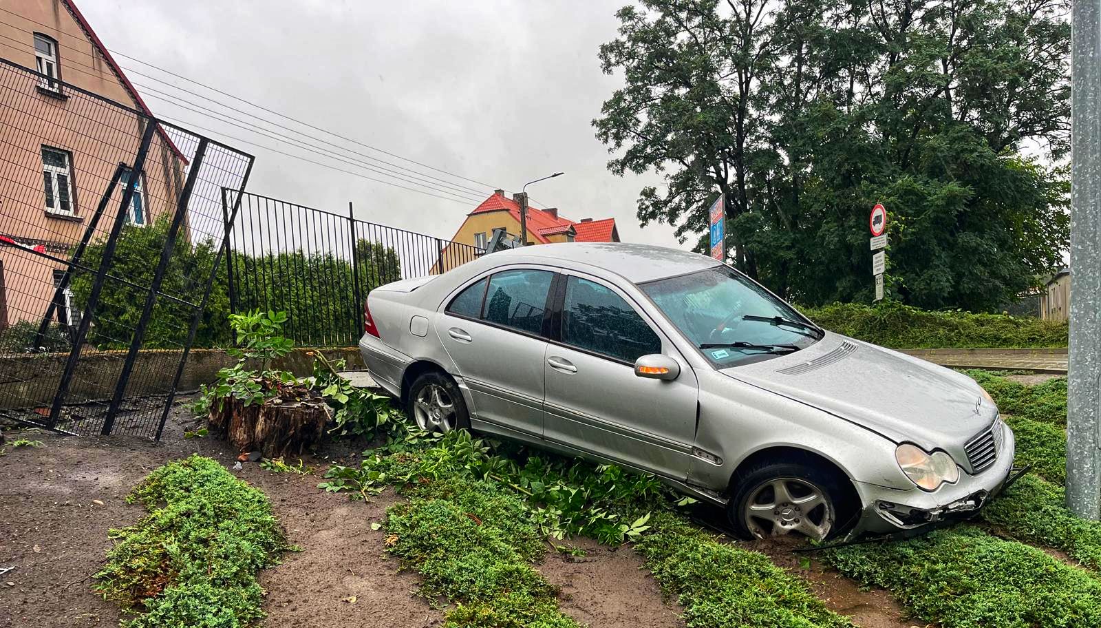 Do zdarzenia doszło na ulicy 3 Maja, gdzie mężczyzna nie zatrzymał się na skrzyżowaniu z ulicą 29 Grudnia. Stracił panowanie nad pojazdem, w wyniku czego samochód wypadł z drogi i uderzył w ogrodzenie jednej z prywatnych posesji. Na miejsce natychmiast zadysponowano służby ratunkowe.