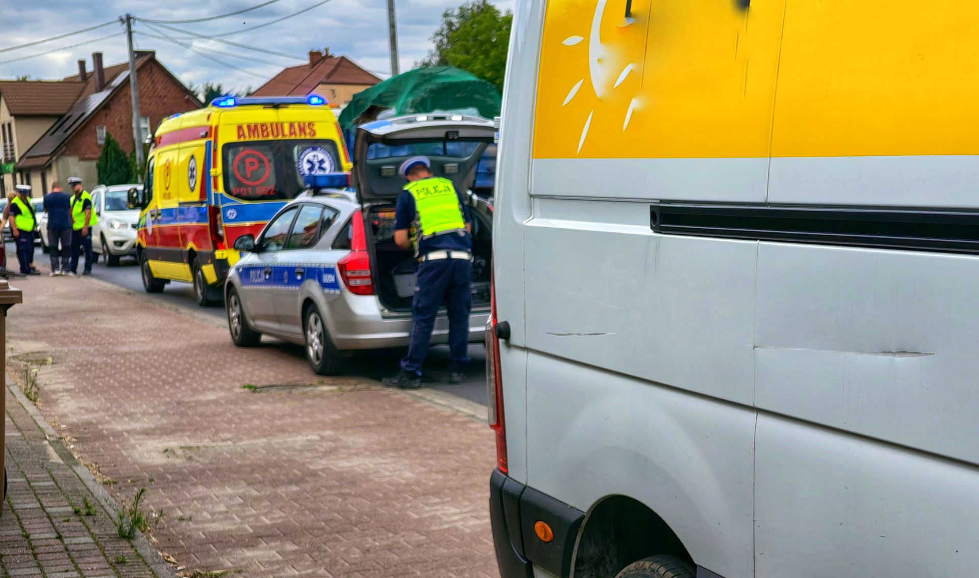 Do zdarzenia doszło wczesnym popołudniem. Około 50-letni rowerzysta jechał ulicą Wiejską w kierunku Ostrowa Wielkopolskiego. Nagle kobieta otwarła z impetem drzwi od zaparkowanego samochodu osobowego marki Peugeot. W tym momencie rowerzysta stracił równowagę, został uderzony przez busa rozwożącego paczki kurierskie.