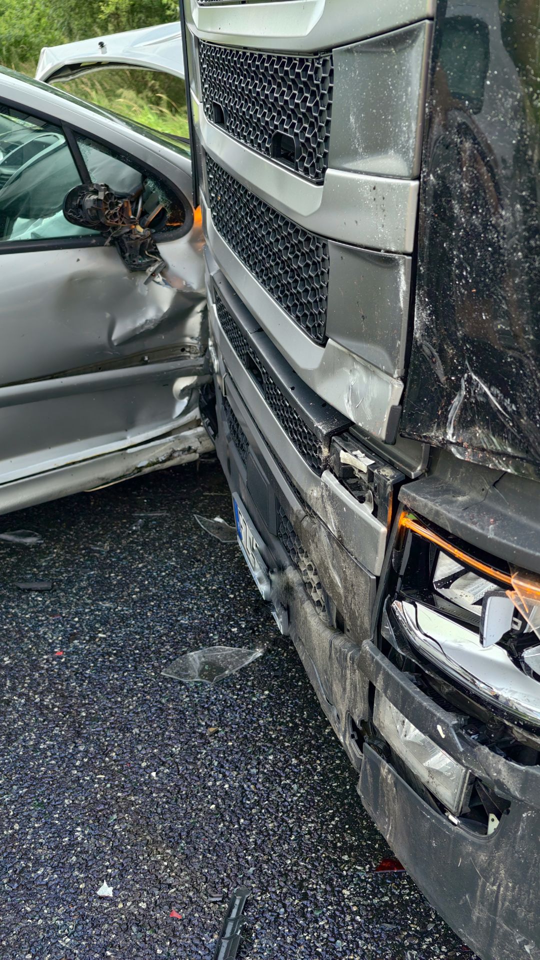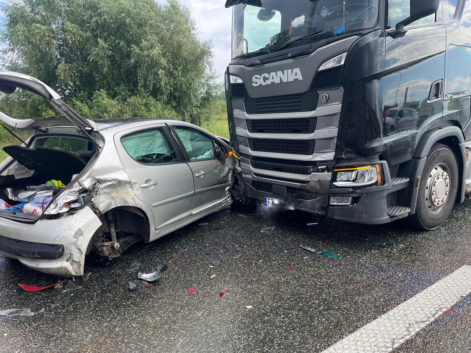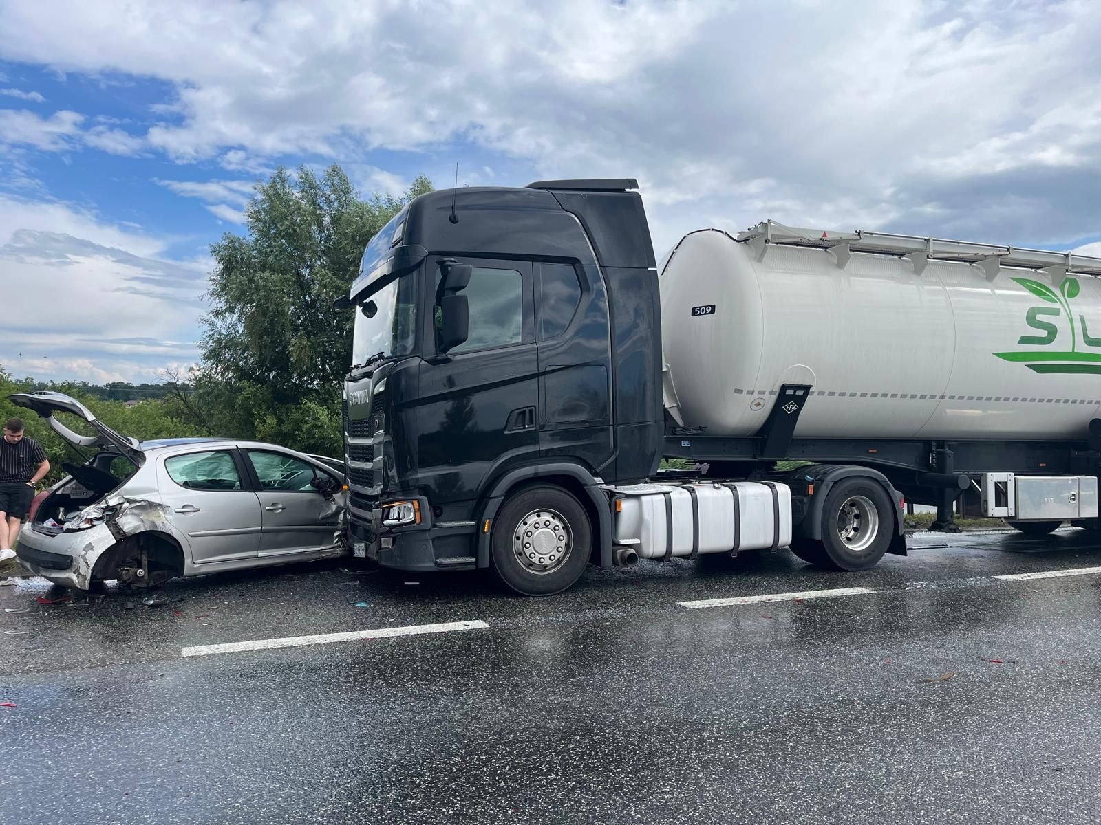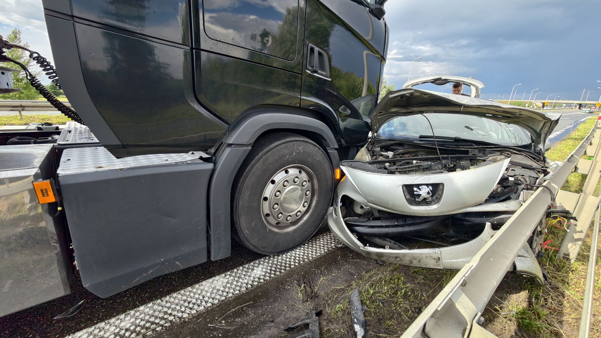 Zaczął padać intensywny deszcz, co utrudniło widoczność. Przed Peugeotem jechał jeszcze inny samochód, który w ostatniej chwili zjechał. Kierowca Peugeota w tym momencie wjechał w tył Opla, a następnie zarzuciło go pod jadącą prawym pasem ciężarówką Scanię.