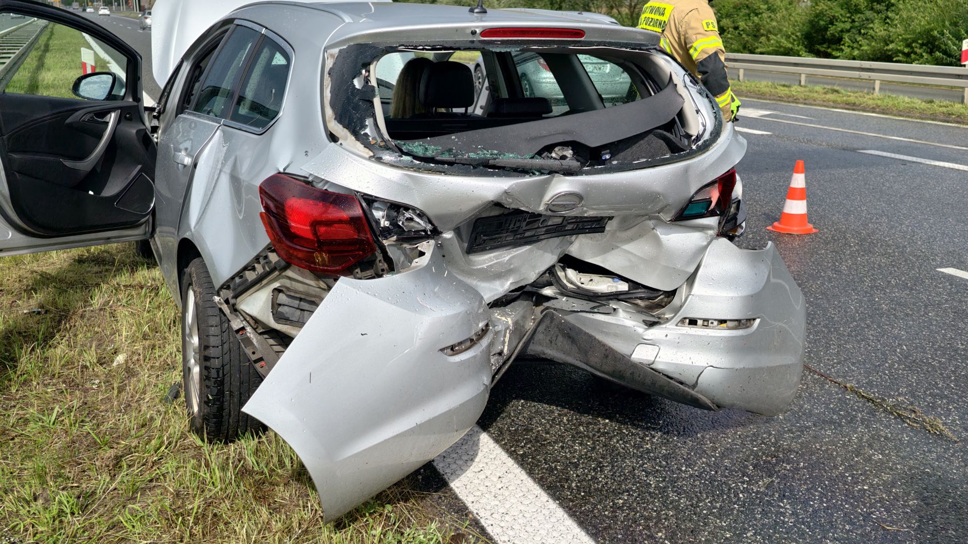 Ze wstępnych ustaleń wynika, że samochód Opel w wyniku awarii zatrzymał się częściowo na lewym poboczu, a częściowo na lewym pasie.