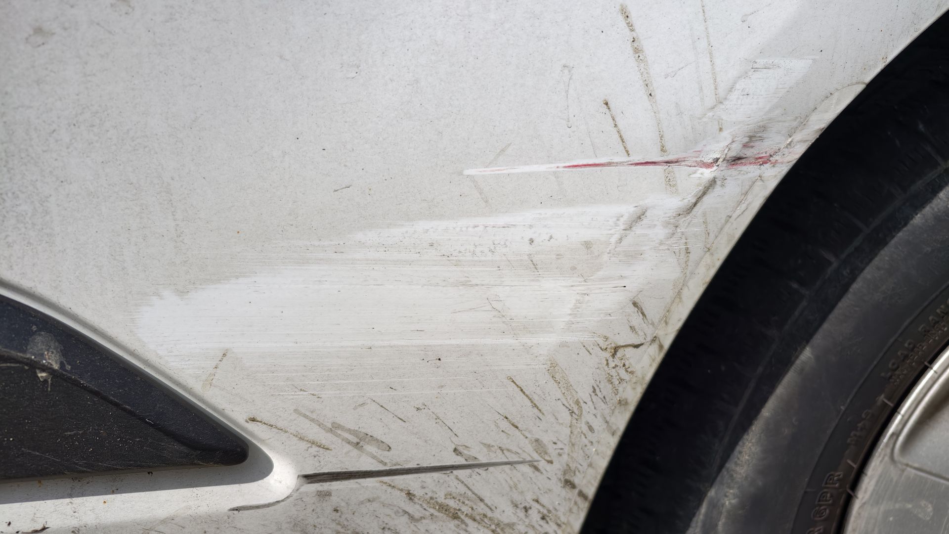 Należy zaznaczyć, że na prawym boku były całkiem świeże ślady przetarcia o czerwony obiekt. Jeśli ktoś ma przerysowany czerwony samochód, może zgłosić na policję, która zweryfikuje dopasowanie śladów na obu pojazdach.
