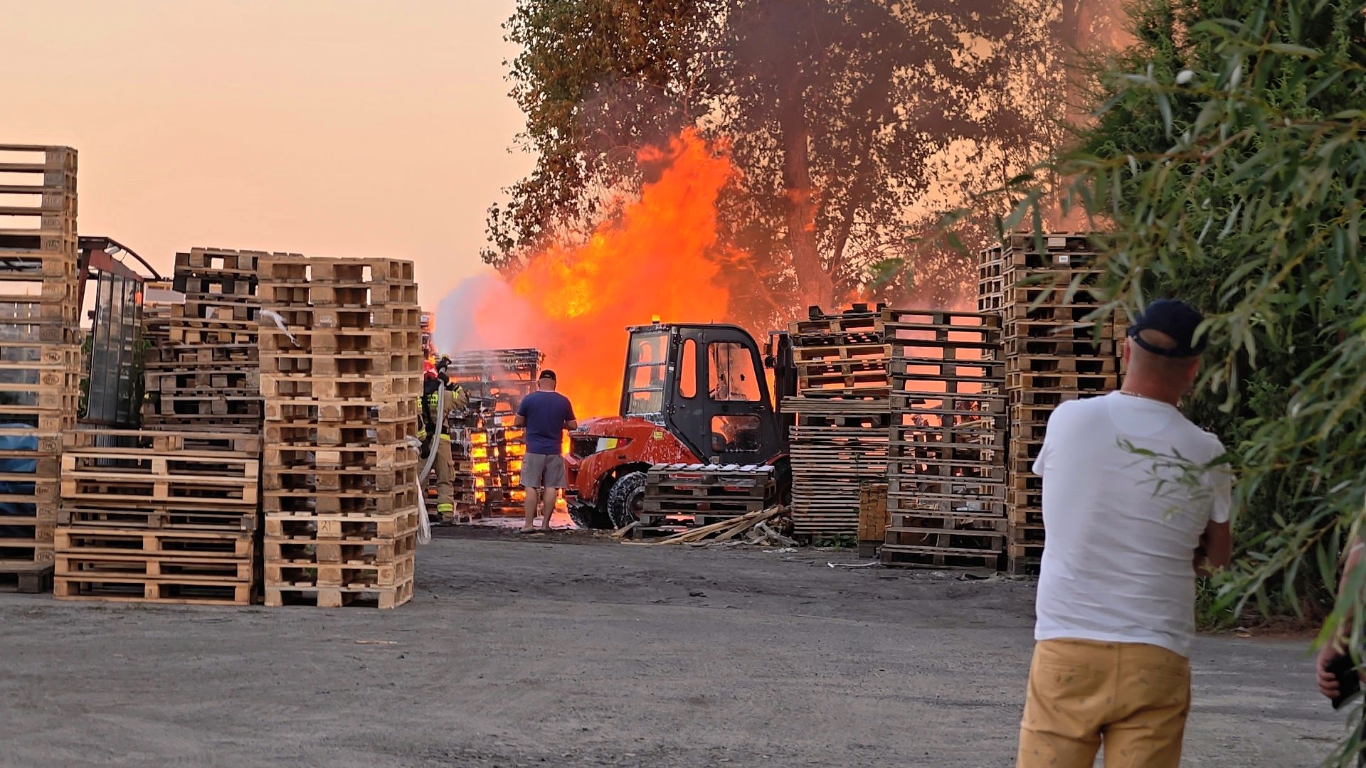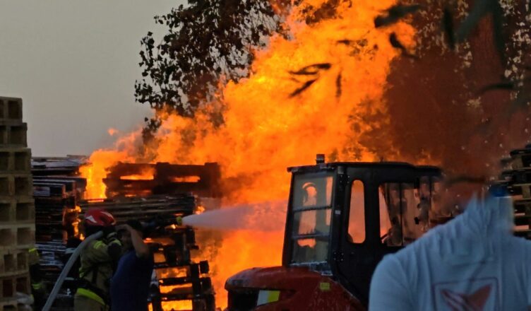 Przed godziną 20 doszło do pożaru na terenie firmy znajdującej się w Zacharzewie przy ulicy Krotoszyńskiej. Zapaliły się palety drewniane, a także ściernisko.