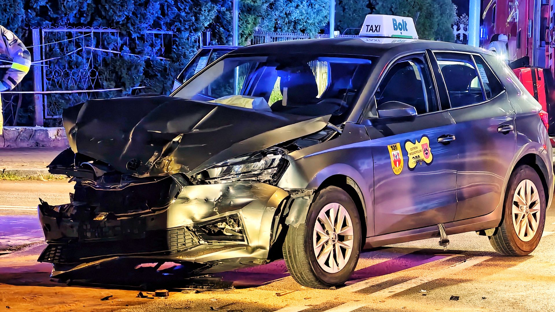 Ze wstępnych ustaleń wynika, że kierowca Skody Fabia, wykonujący przewóz osób w ramach firmy Bolt, nie zatrzymał się na STOPie i uderzył w bok Hyundaia Getz.
