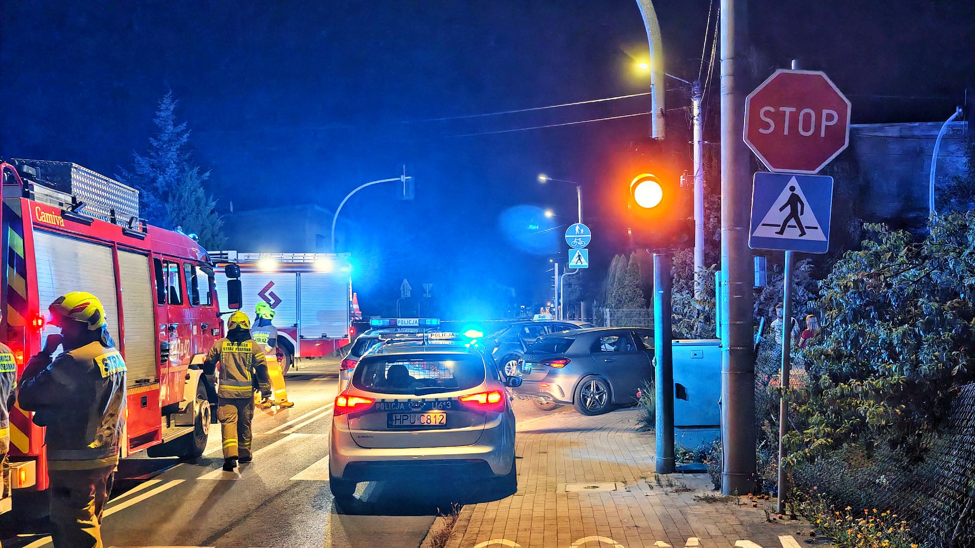 Na miejscu interweniowali strażacy, którzy zabezpieczyli miejsce zdarzenia i udzielali pierwszej pomocy.