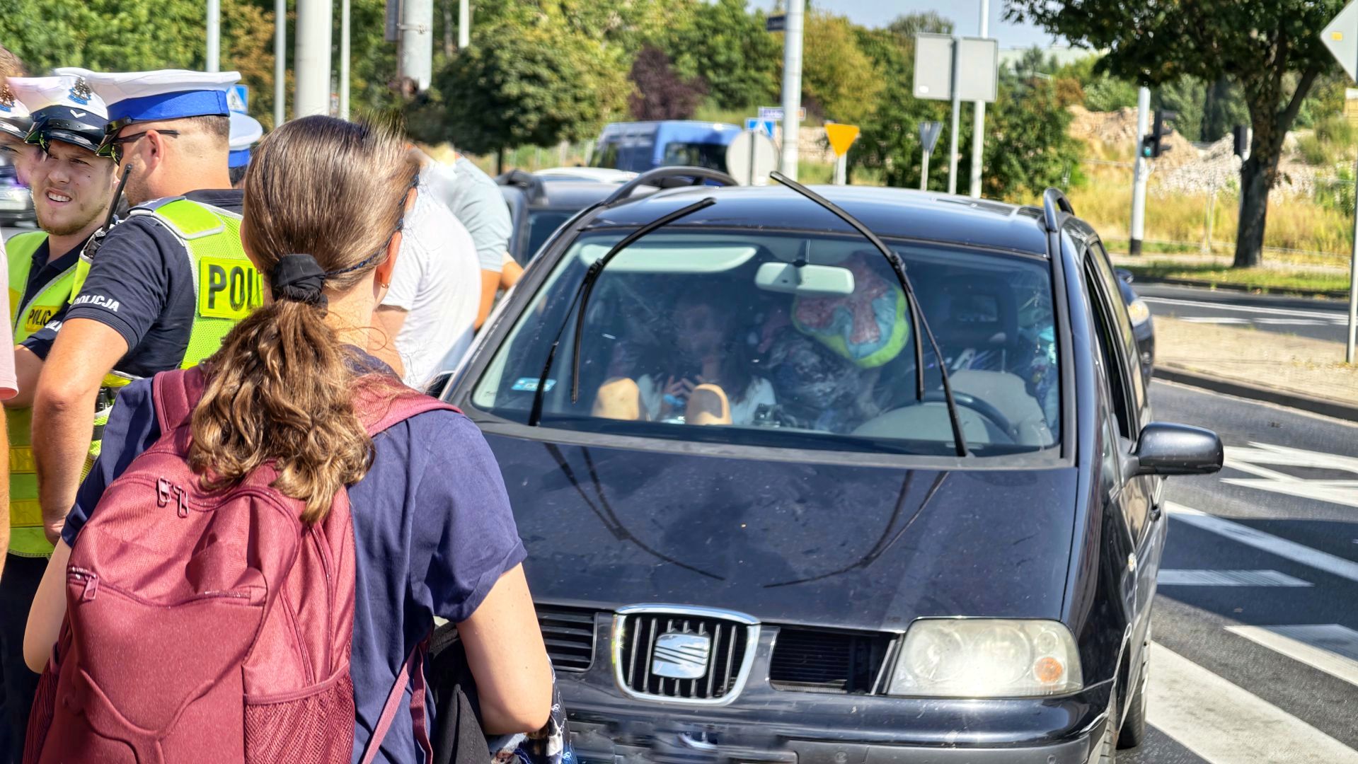 Choć przez chwilę wydawało się, że sytuacja się uspokoi, Seat ruszył dalej aleją Słowackiego. Na wysokości skrzyżowania z ulicą Wańkowicza doszło do kolejnego dramatycznego zdarzenia. Kierowca Dacii wybiegł z samochodu i rzucił się na maskę Seata, chcąc zablokować jego dalszą jazdę. Mimo tego ojciec dziewczyny kontynuował jazdę jeszcze przez kilkanaście metrów, po czym zjechał na chodnik.