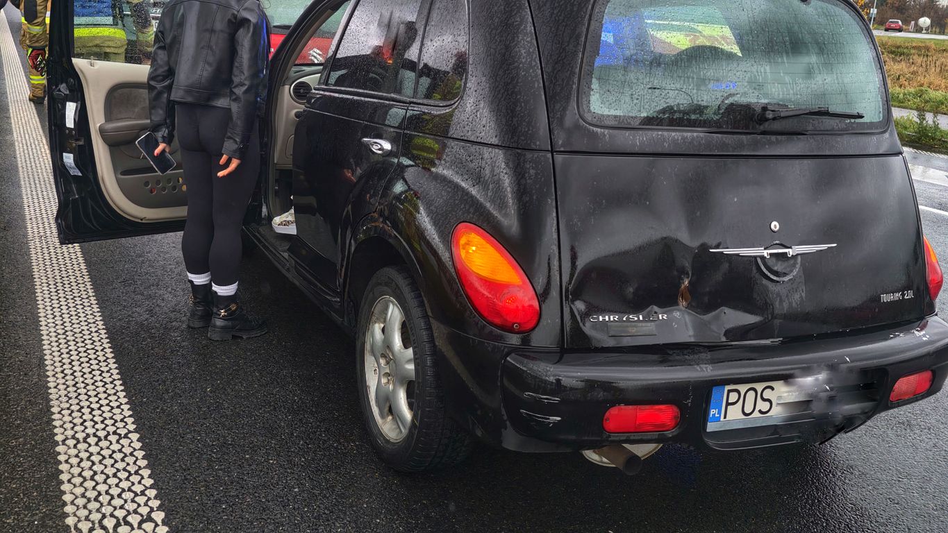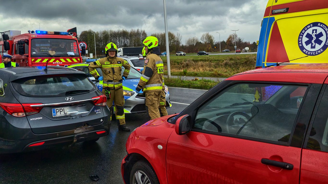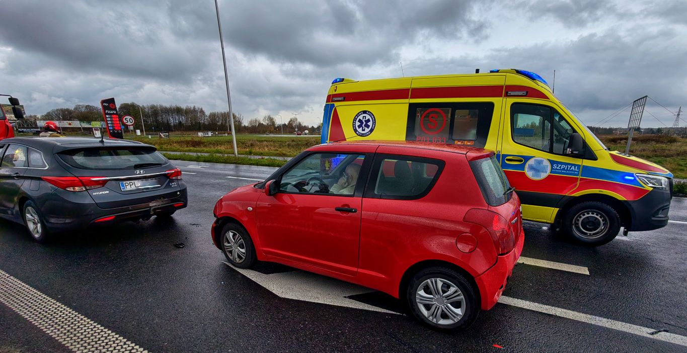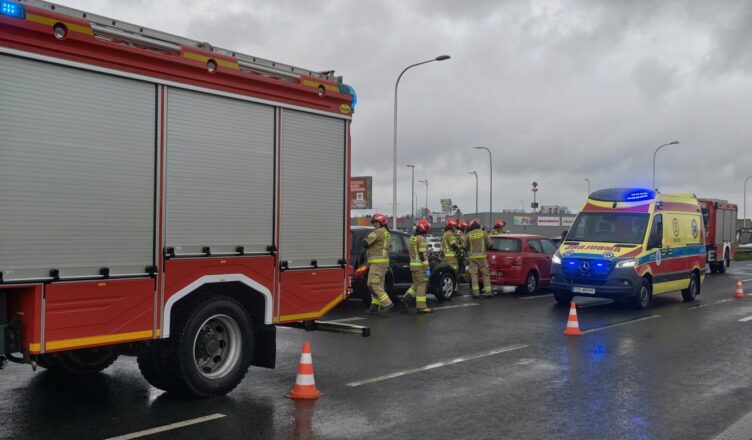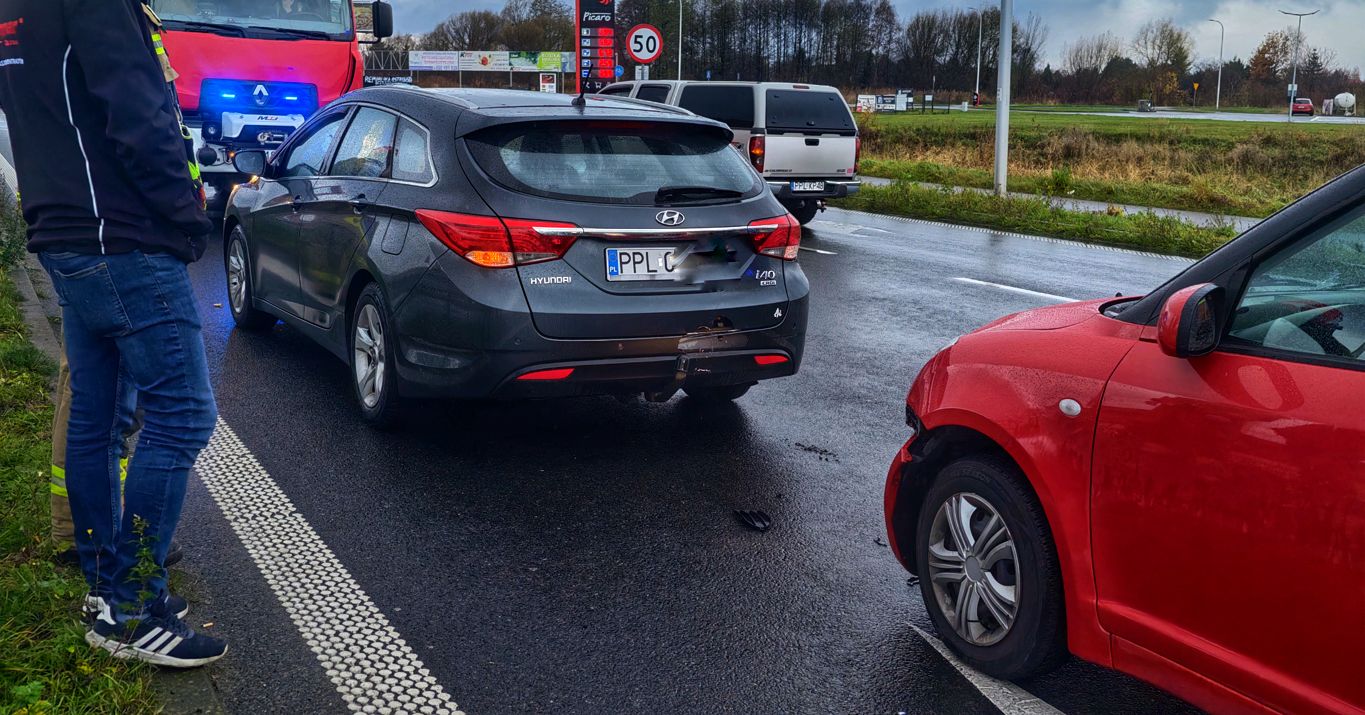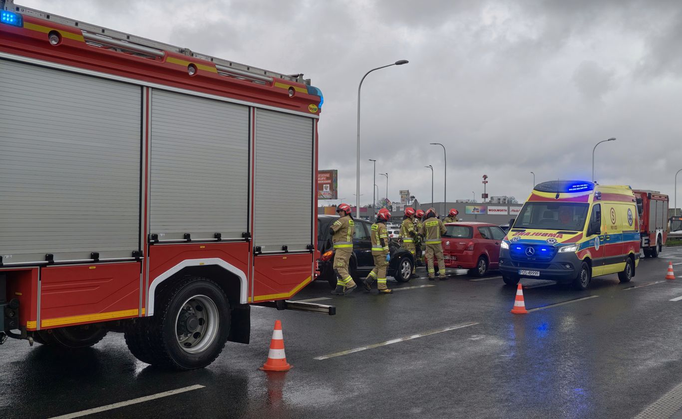 Po godzinie 12 doszło do zdarzenia drogowego z udziałem trzech aut osobowych. Młoda kierująca Chrysler PT Cruiserem jechała od strony Kalisza i zjechała na lewoskręt prowadzący w stronę galerii. Nie zachowała ostrożności i uderzyła w tył Suzuki, a ten rykoszetem uderzył w tył Hyundaia. Na miejsce wysłano służby ratunkowe.