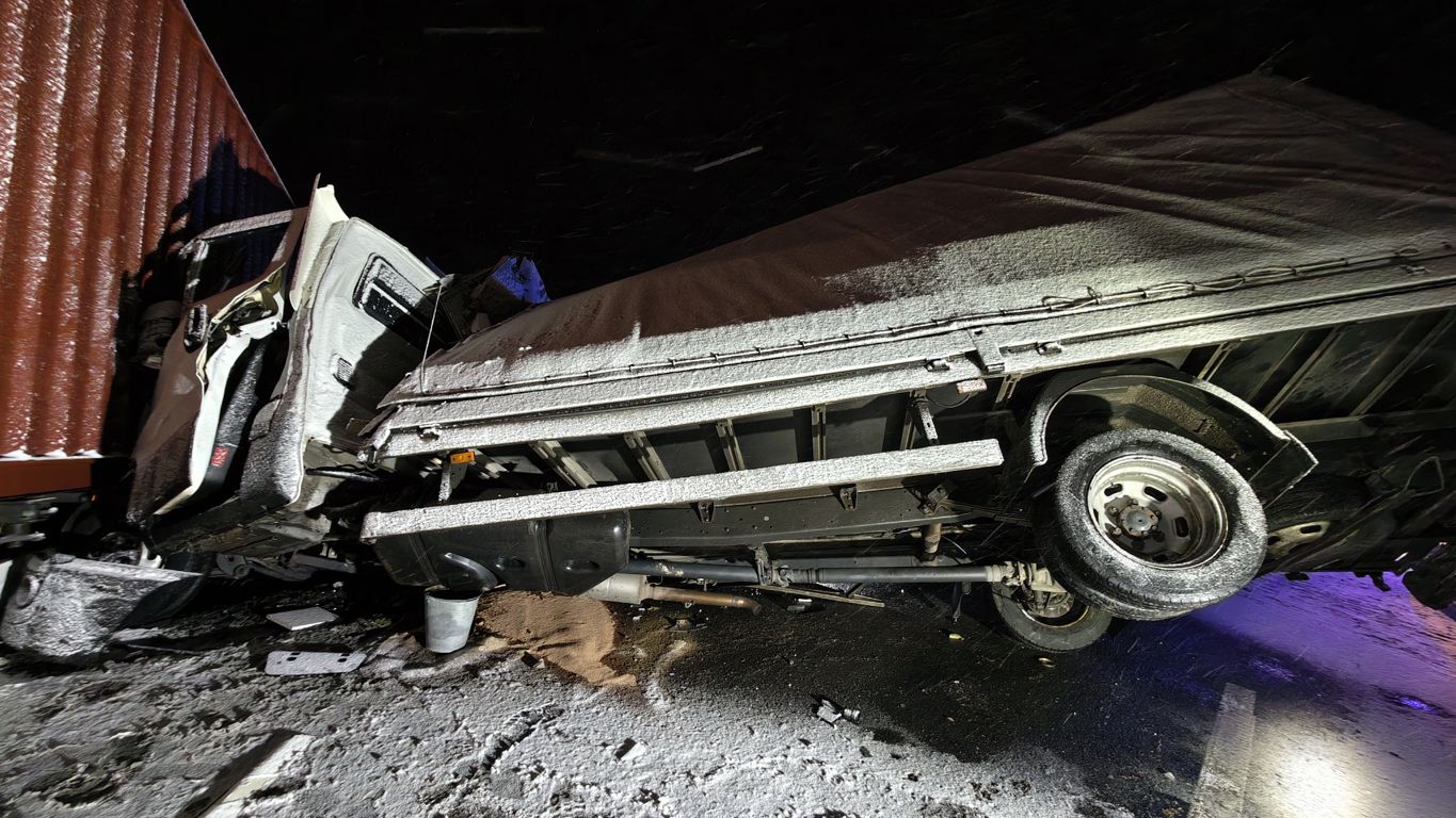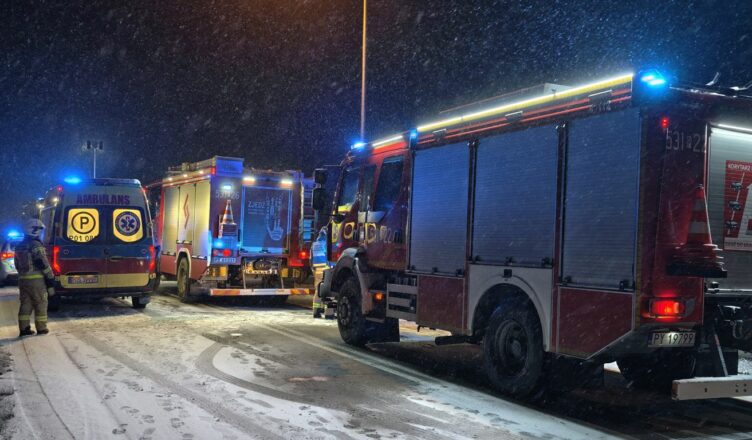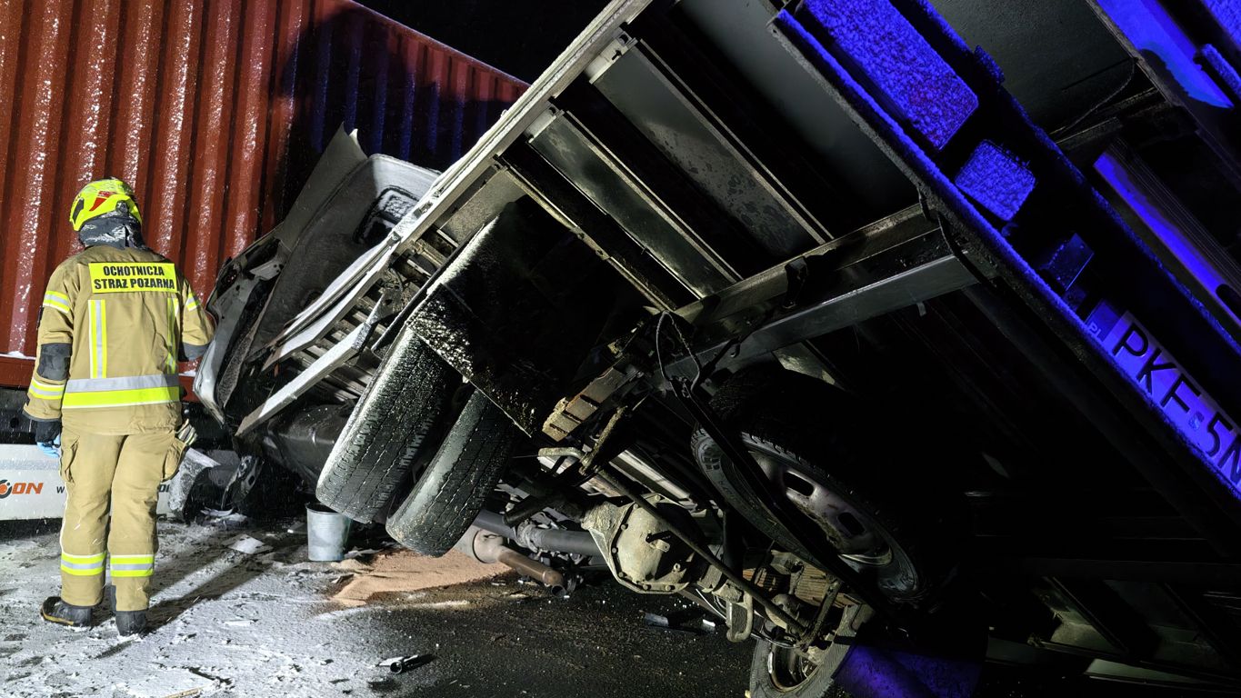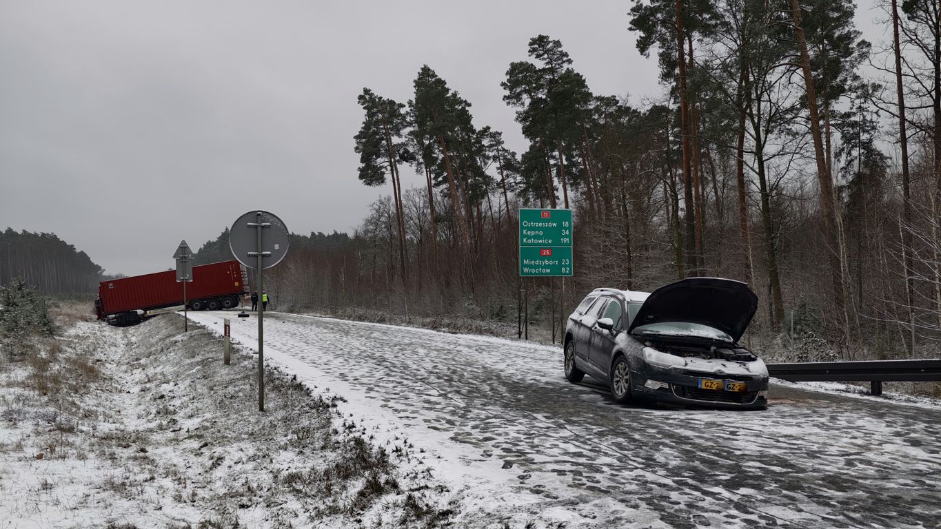 Przed rondem Strugi zderzyła się z samochodem ciężarowym z powiatu kaliskiego. Ciężarówka zjechała na lewy pas i stanęła w poprzek. Wtedy w jej bok uderzył dostawczy z jednej z dużych firm meblarskich z powiatu kępińskiego.