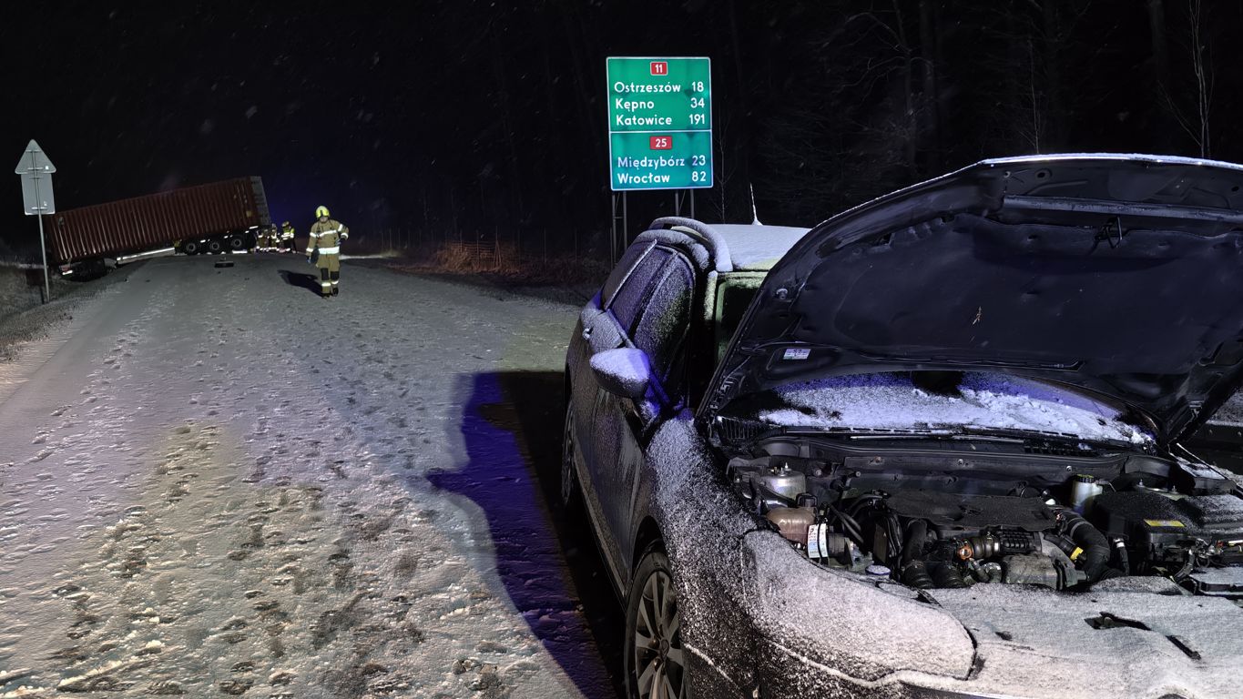 Po godzinie 5 rano doszło do wypadku na drodze krajowej nr 11/25 tuż przy rondzie Strugi. W zdarzeniu brały udział osobówka, dostawczy i ciężarówka. Jedna osoba wymagała interwencji medycznej.