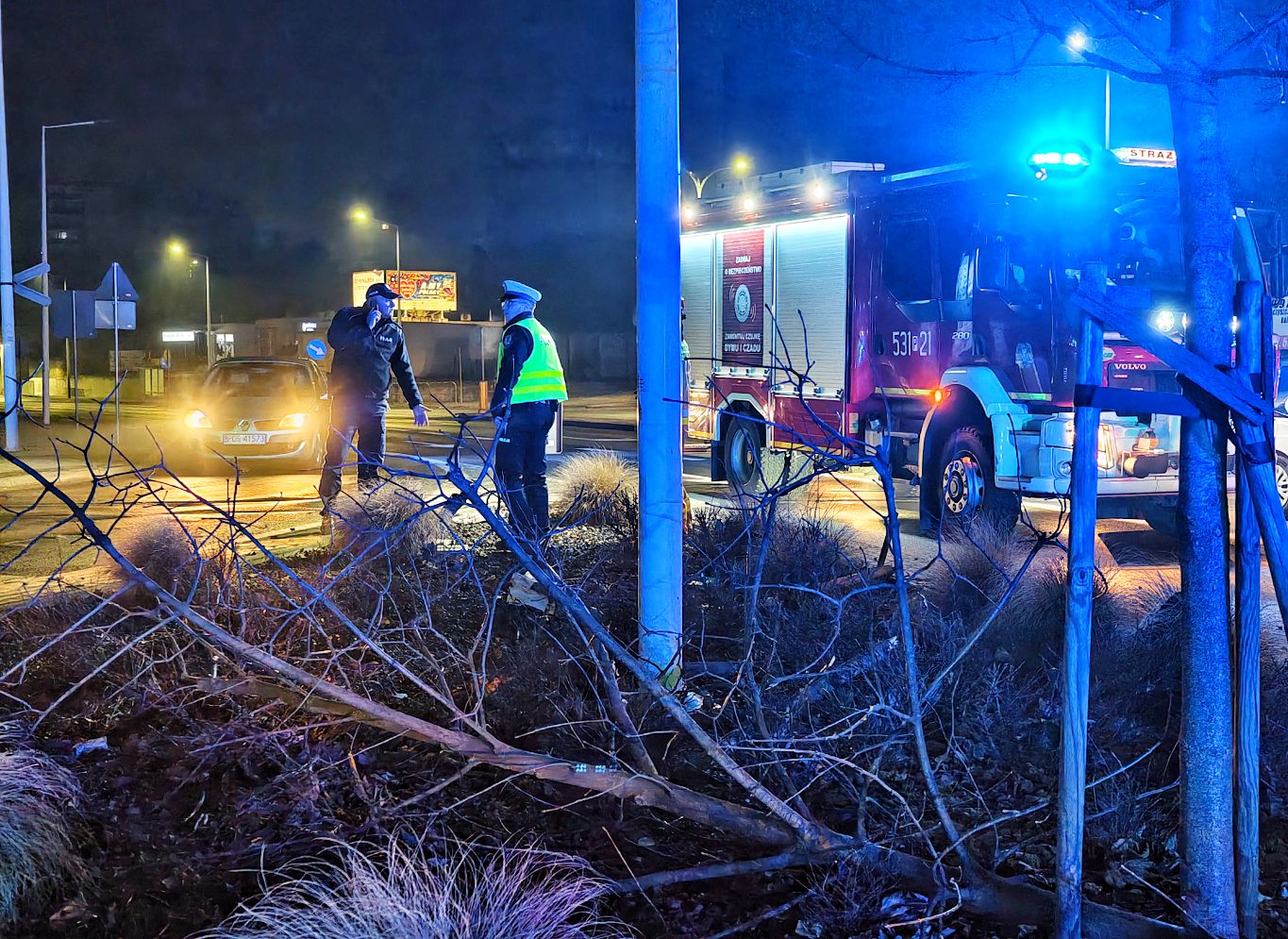 Na szczęście nikt w tym miejscu nie przechodził. Drugie szczęście, że na pobliskiej stacji paliw stał radiowóz, który natychmiast podjechał na miejsce zdarzenia.