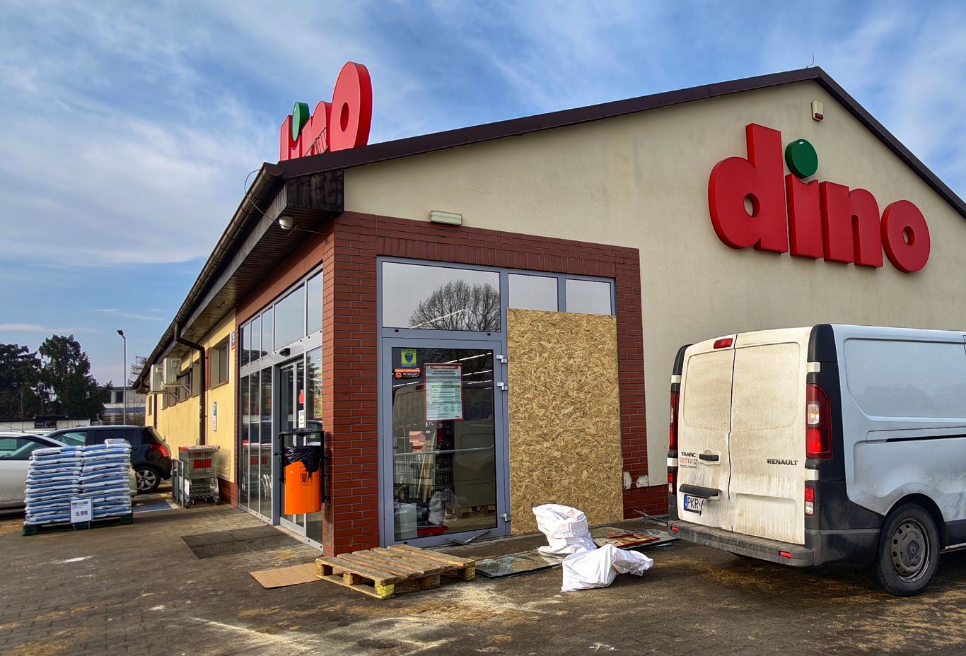 Kwadrans przed godziną 8 rano doszło do niebezpiecznego zdarzenia na terenie sklepu Dino przy ulicy Poznańskiej w Ostrowie Wielkopolskim. Samochód wjechał w szybę przy wejściu.