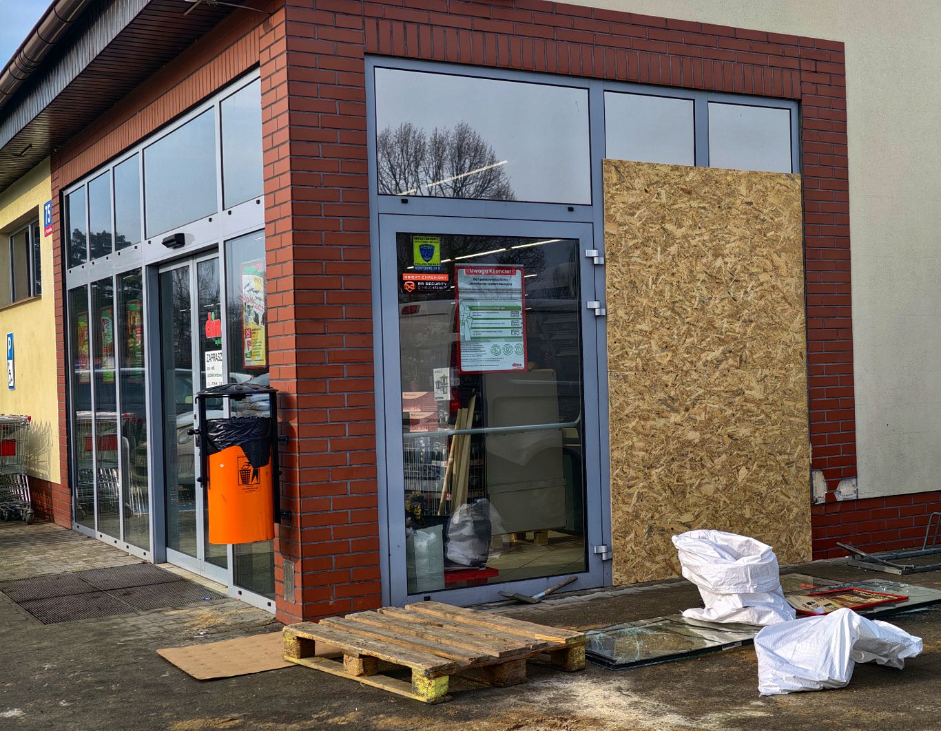 27-latek z ułańską fantazją pomimo gołoledzi wjechał na teren parkingu sklepu. Prędkość była na tyle duża, że utracił kontrolę nad autem i wjechał w szybę rozbijając ją. Kasjerka siedząca na kasie bardzo wystraszyła się.