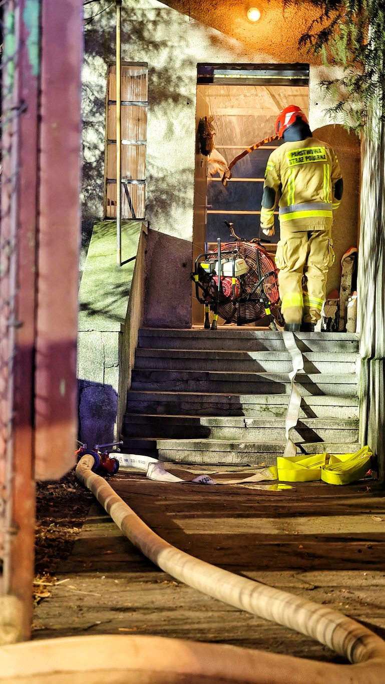 Lokator stwierdził zadymienie. Zaczęto poszukiwać źródła. Podejrzewano, że mogło dojść do rozszczelnienia się układu kominowego. Ostatecznie stwierdzono, że awarii uległ system wydobywania dymu z pieca.
