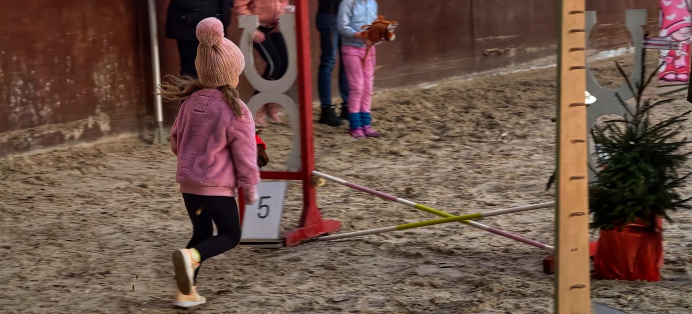 Najmłodsze uczestniczki – niektóre miały zaledwie 4 lata – z ogromnym zaangażowaniem pokonywały przeszkody zawieszone na wysokości 30 centymetrów, trzymając konika między nogami. Starsze dziewczynki skakały już znacznie wyżej: 50, 60, a nawet 70 centymetrów. Nie obyło się bez strąconych tyczek, ale to tylko dodało rywalizacji sportowego charakteru. Najszybsze zawodniczki imponowały formą, osiągając czasy rzędu 28 sekund!