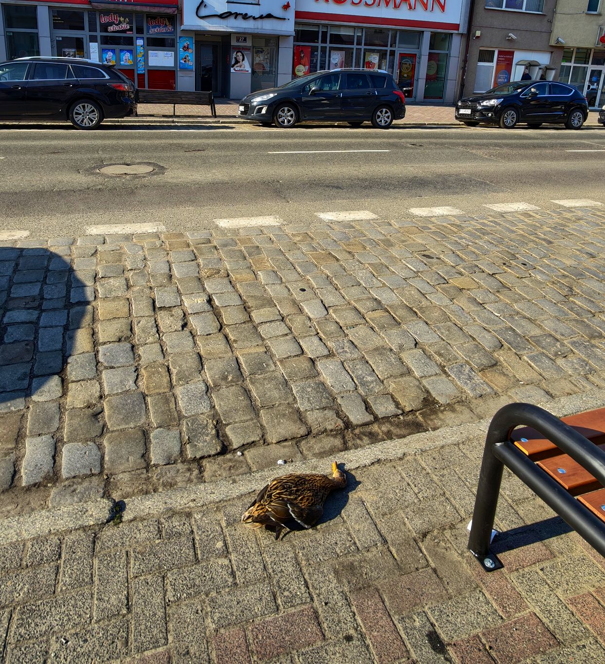 Przed godziną 3 w nocy powiadomiono ostrowską drogówkę o kolizji. Na miejscu funkcjonariusze zobaczyli samochód marki Peugeot, dwie kaczki krzyżówki i plamę krwi. Jedna kaczka nie przeżyła zderzenia z autem, druga doznała obrażeń ciała – prawdopodobnie uraz nóg lub miednicy.