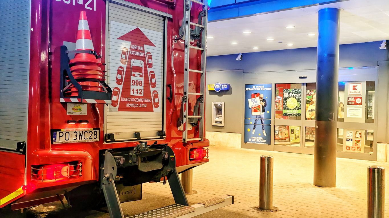 Strażacy pojechali na sygnałach do sklepu Kaufland przy ulicy Dworcowej w Ostrowie Wielkopolskim. Po wejściu do toalety damskiej potwierdzili, że drzwi do jednej z nich są zamknięte. Wewnątrz przebywała kobieta, która nie odpowiadała na wołanie.