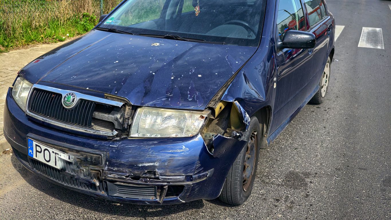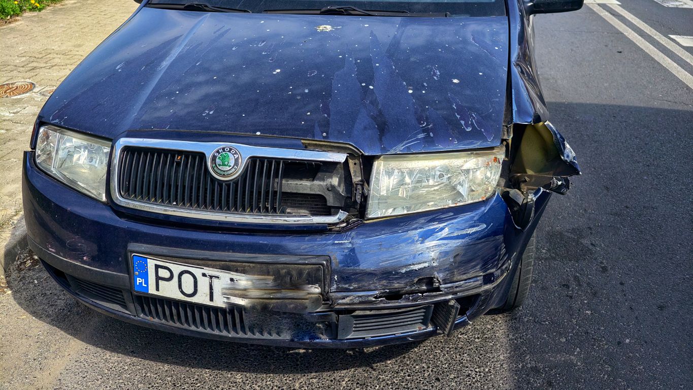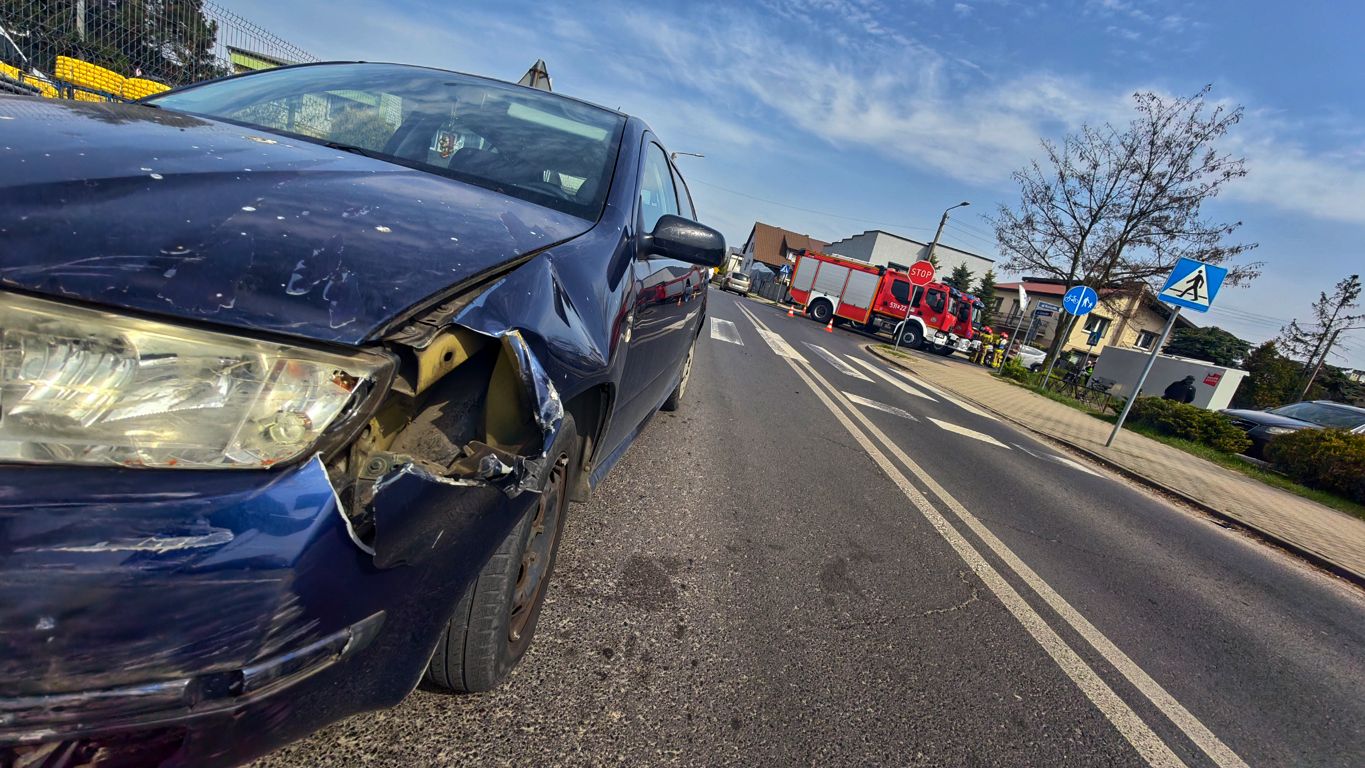 Na skrzyżowaniu zderzyły się dwa auta osobowe. Skodą Fabią kierowała kobieta, która jako kolejny kierowca w tym miejscu, nie zauważyła znaku STOP.