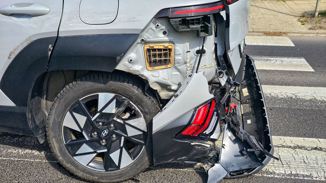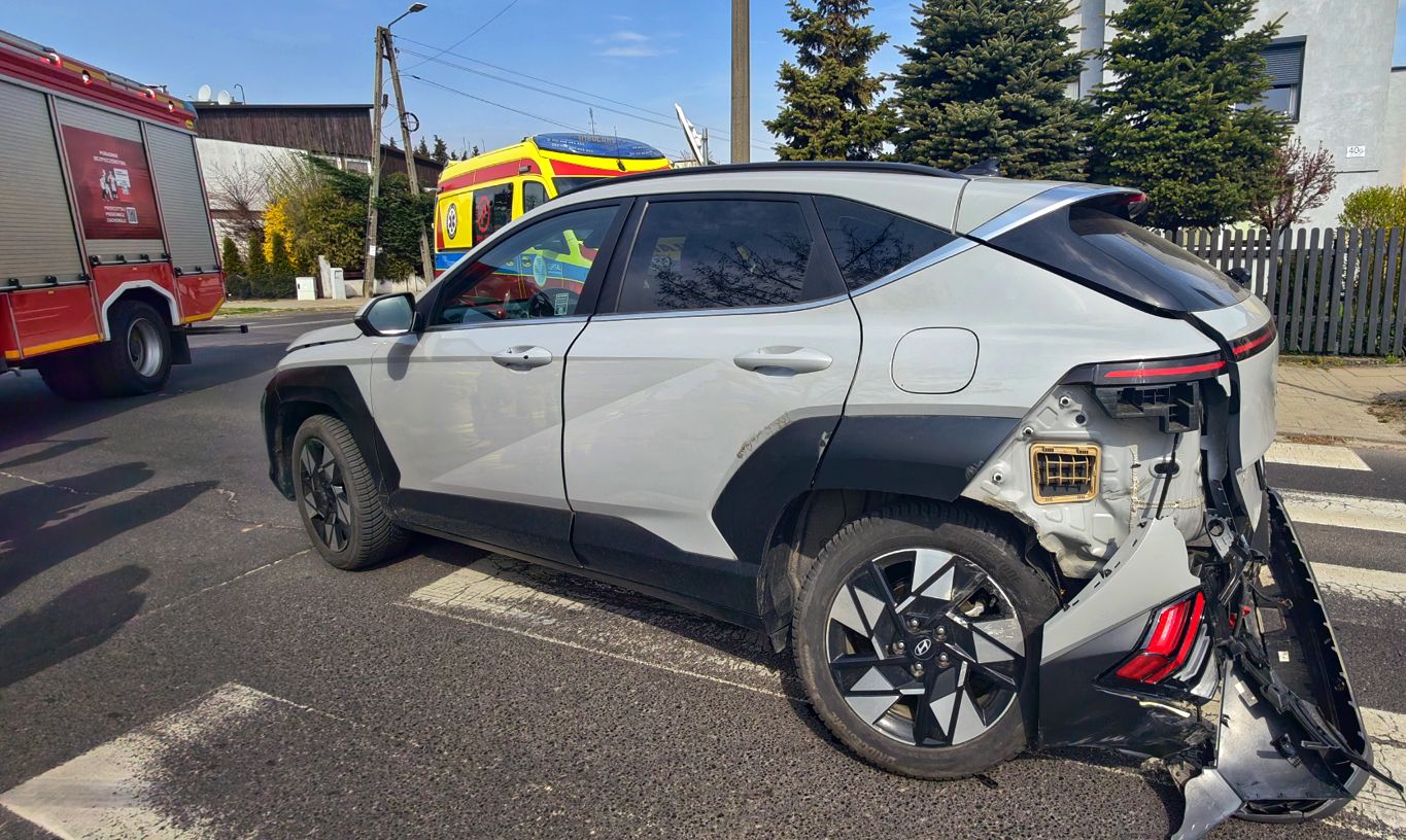 Wjeżdżając na skrzyżowanie uderzył w tył Hyundai Kony. Koreańskie auto obróciło się wokół osi. Na miejsce wezwano straż pożarną, karetkę pogotowia ratunkowego oraz policję.