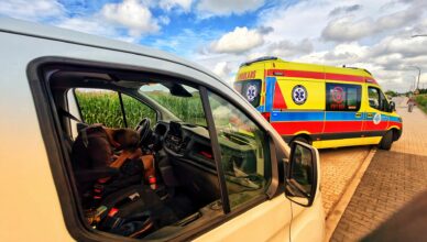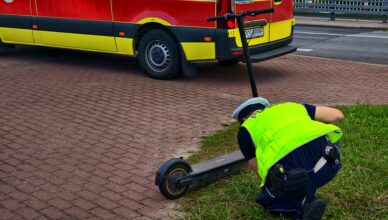 Chwilę przed godziną 17 doszło do zderzenia dwóch nastoletnich dziewczyn jadących na jednej hulajnodze z 64-letnią rowerzystką. Starsza kobieta trafiła do karetki z